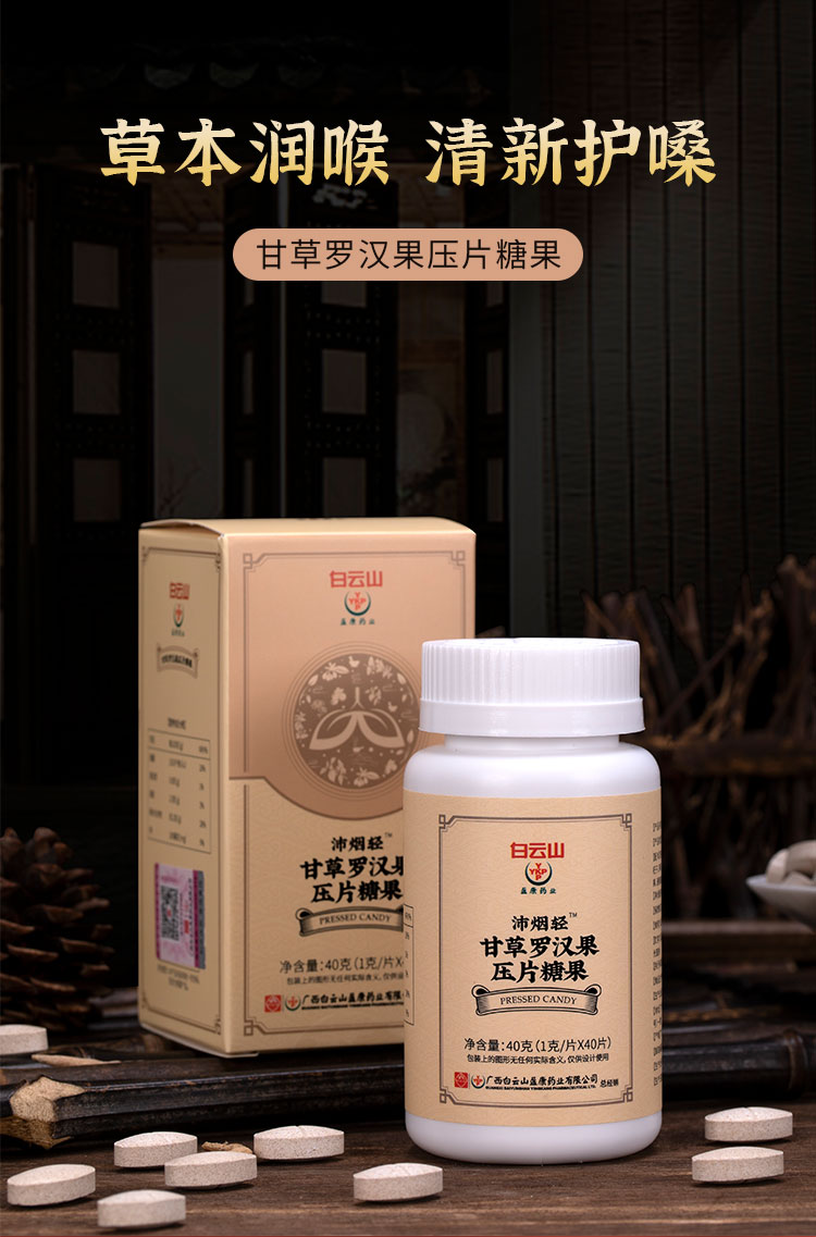 【给你的肺洗个澡】白云山沛烟轻甘草罗汉果压片糖果草本润喉清新护嗓