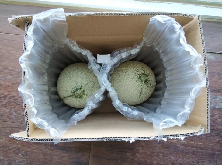 蜜瓜的味道妙不可言。我们收到的网纹蜜瓜每一个都是用气柱包好之后再装箱,做足了保护措施。