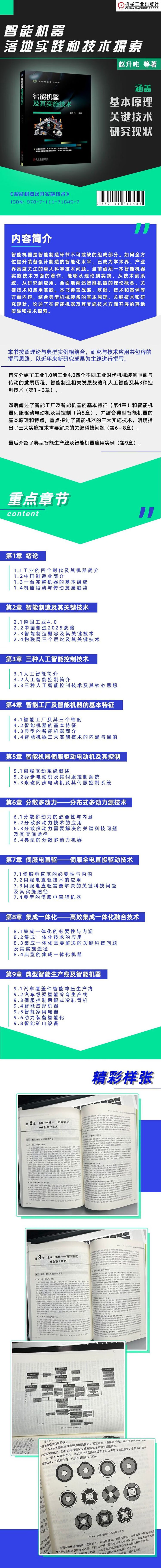 本书共分9章,按照理论与典型实例相结合,研究与技术应用共包容的撰写思路,以近年来团队新研究成果为主线进行撰写。首先介绍了工业1.0到工业4.0四个不同工业时代机械装备驱动与传动的发展历程、智能制造相关发展战略和人工智能及其3种控制技术(第1~3章),然后阐述了智能工厂及智能机器的基本特征(第4章)和智能机器伺服驱动电动机及其控制(第5章),并结合典型智能机器的基本原理和特点,重点探讨了智能机器的三大实施技术,明确指出了三大实施技术需要解决的关键科技问题(第6~8章),最后介绍了典型智能生产线及智能机器应用实例(第9章)。