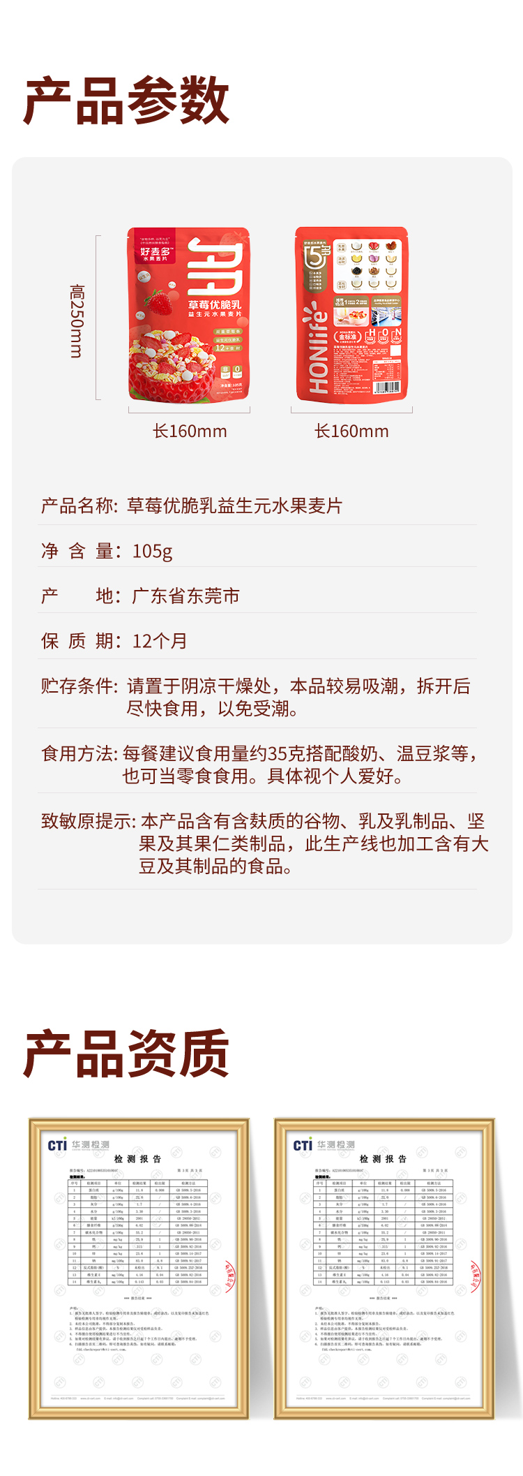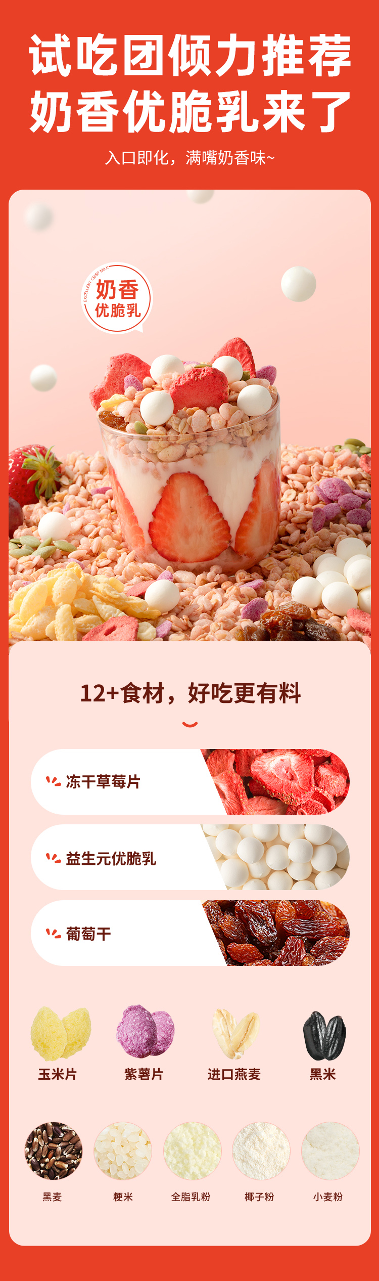 【麦麦SY】草莓优脆乳105g/袋 | 益生元水果坚果燕麦片早餐
