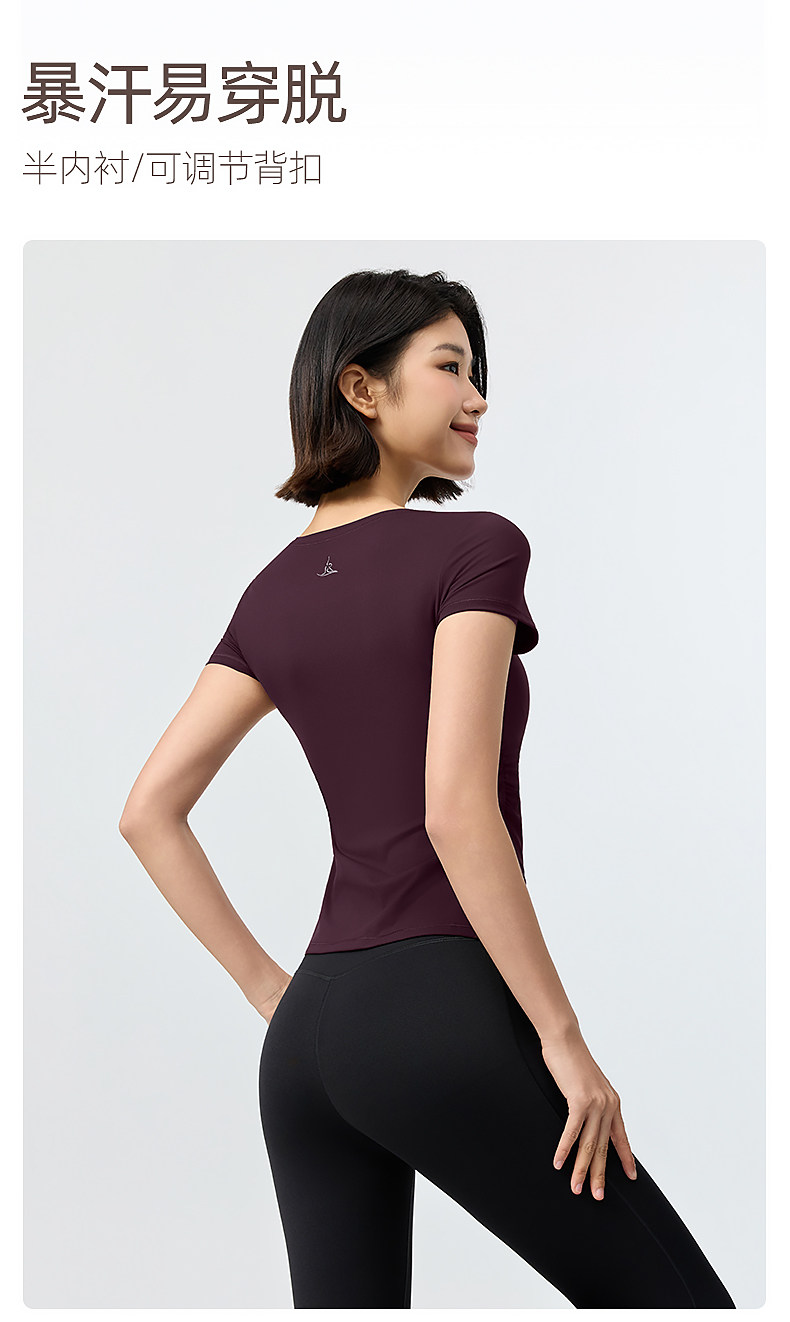 梵美人 F1378 瑜伽短袖 一体固定胸垫 云糯柔感 可调节背扣