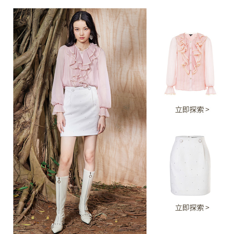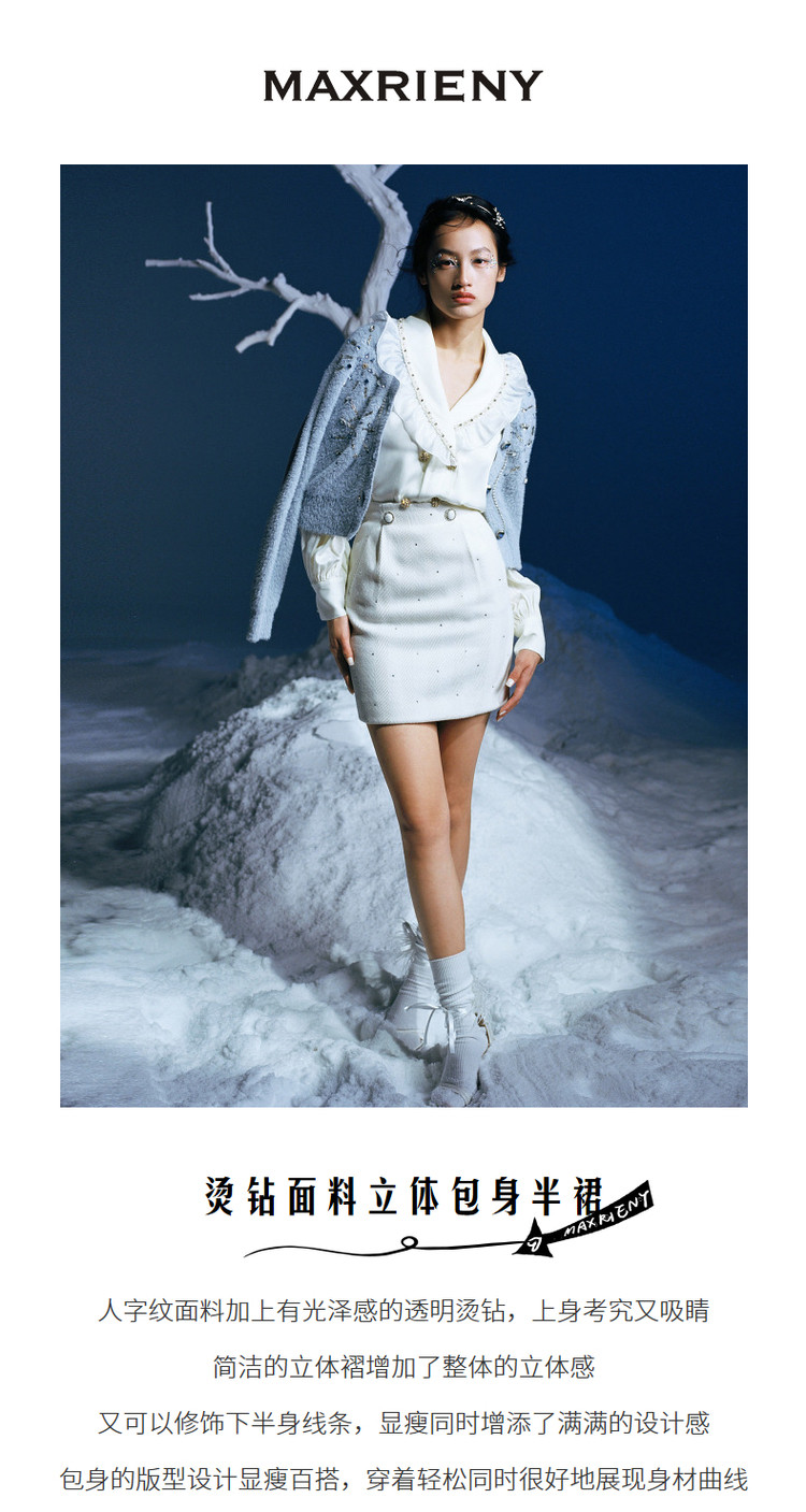 麦斯芮妮MAXRIENY烫钻立体包臀裙秋季高腰半身裙MC87SK799A20