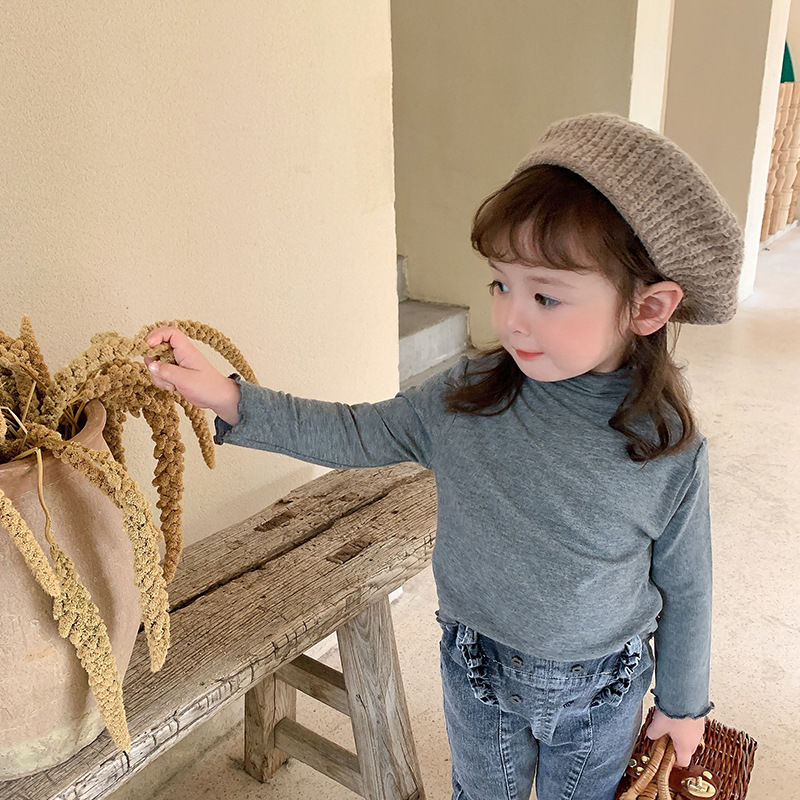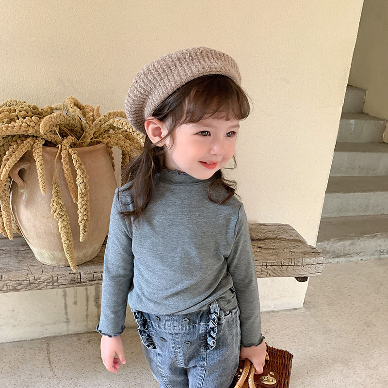 【德绒材质温暖舒适,高领设计保暖抗寒,洋气又可爱~】女童打底衫 宝宝高领德绒 儿童秋冬外穿 中小童宝宝韩版洋气长袖T恤-QQ