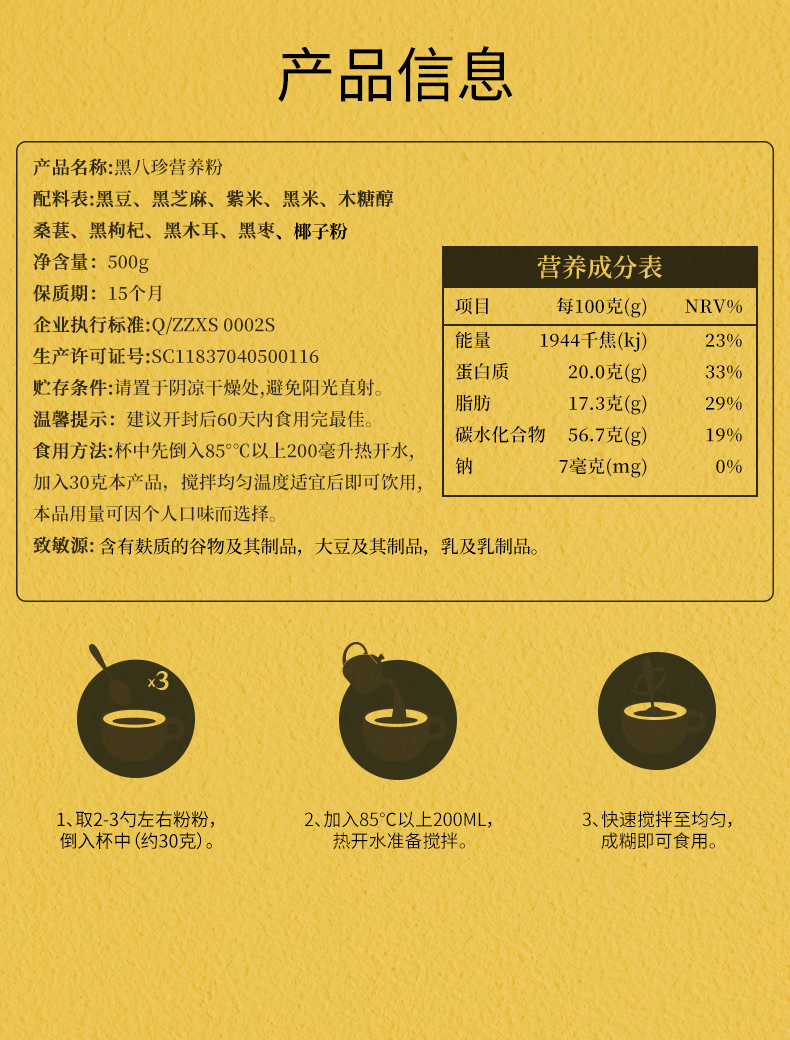 | 【品名】古田森黑八珍营养粉 【规格】 500g*2罐 【保质期】15个月 【发货包装】纸盒 【储存条件】请置于阴凉处,避免阳光直射 【食用方法】开罐冲饮即食,一次建议30克谷粉,用85°C,200毫升的热水冲泡即可。本品用量可因个人口味而选择 【产地】山东枣庄 【发货地】山东枣庄、广东揭阳 【发货快递】随机发货 【不发货区域】新疆、西藏、内蒙古、甘肃、青海、宁夏、海南、港澳台、疫情地区不发货 【发货时效】48小时,周日节假日顺延 |