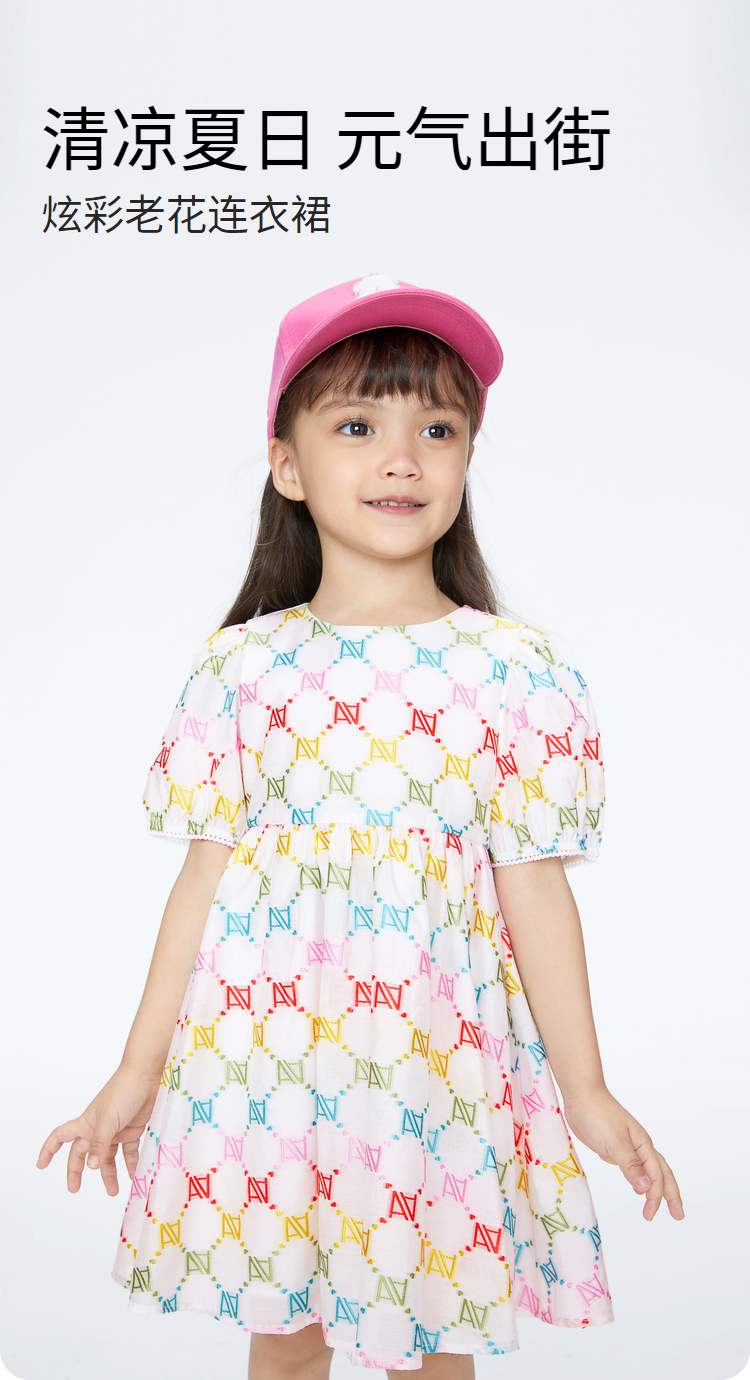 女童炫彩老花连衣裙裙子夏季新款安奈儿童装实体店同款XG423710