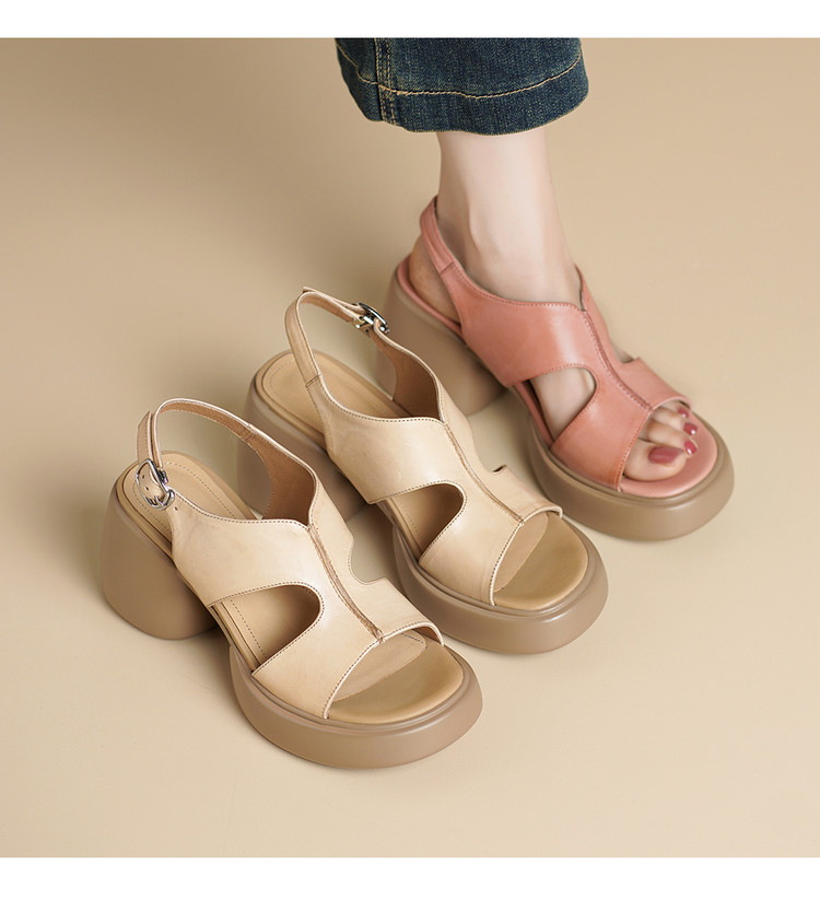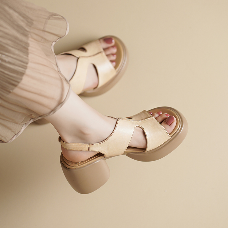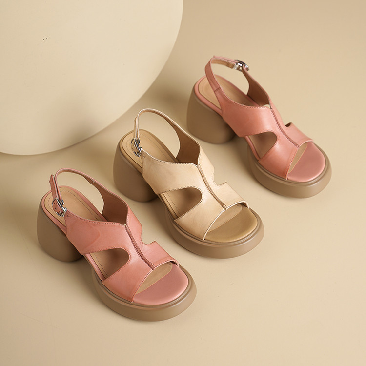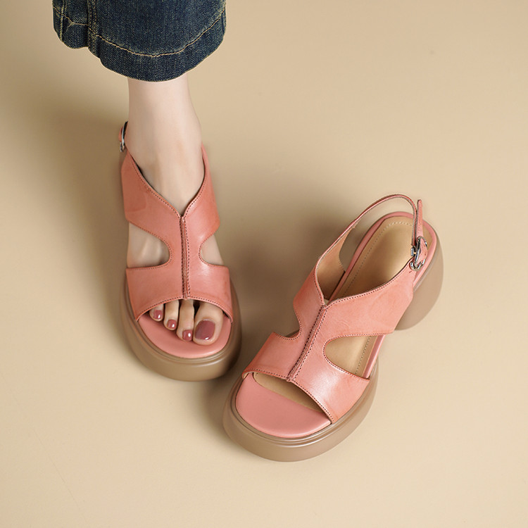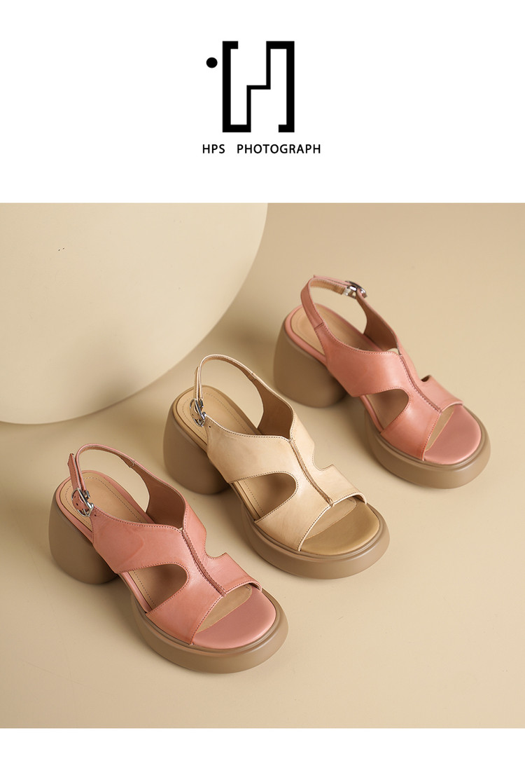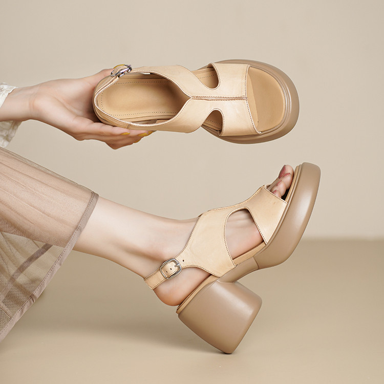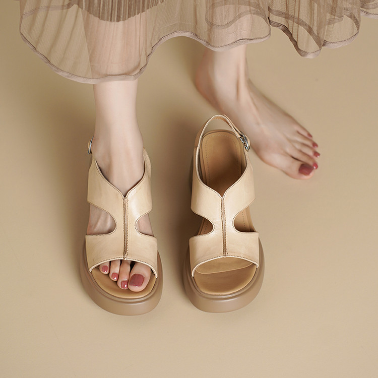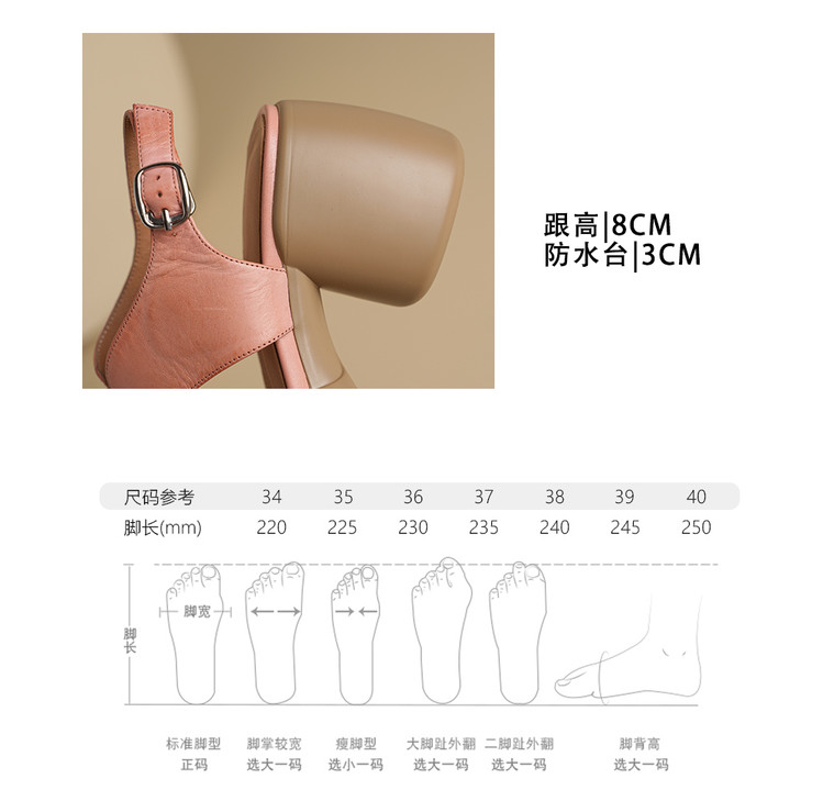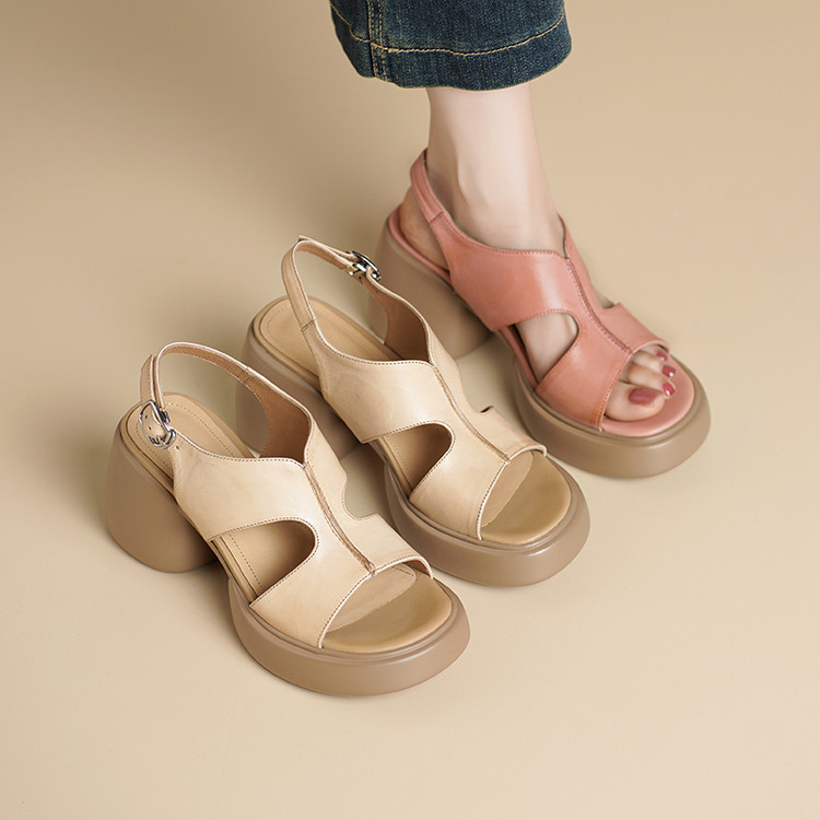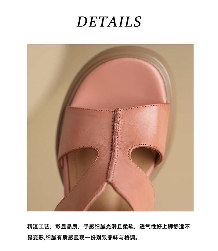 【预售5天】真皮小个子高跟凉鞋女夏季外穿配裙子防水台厚底松糕罗马鞋GP&3281