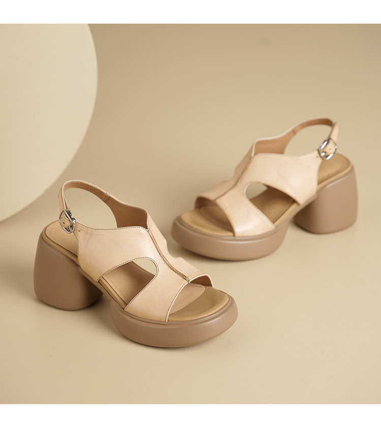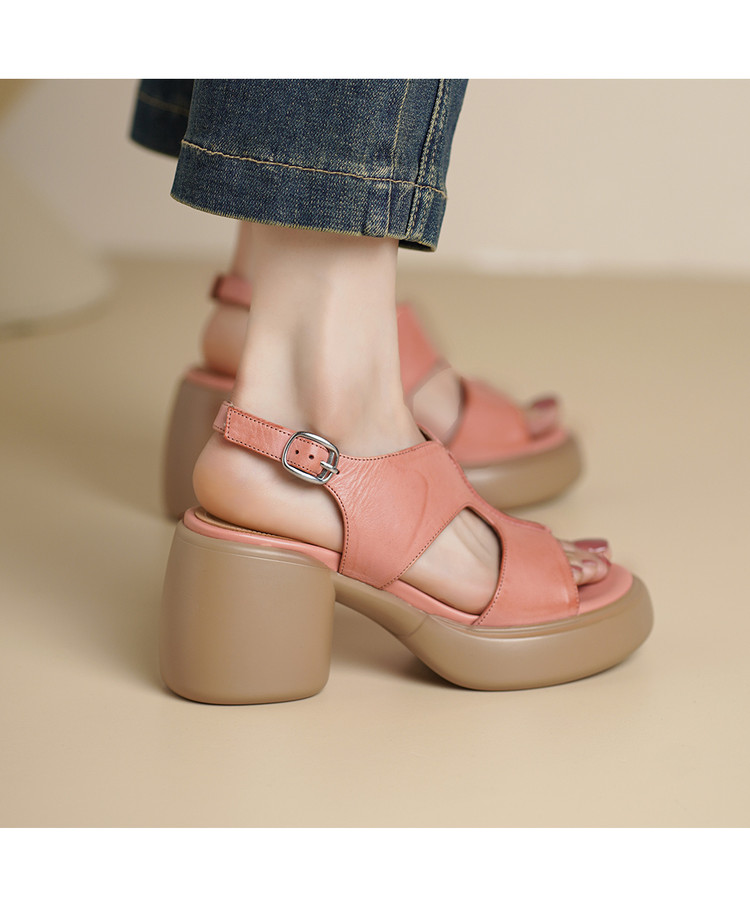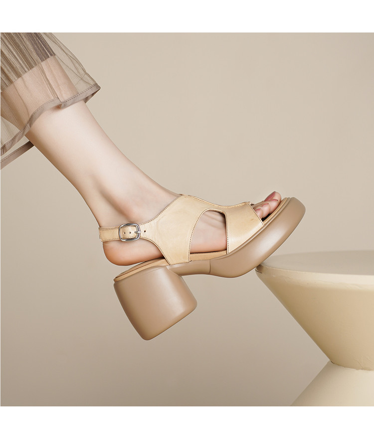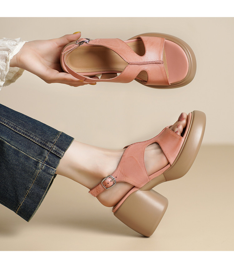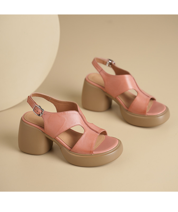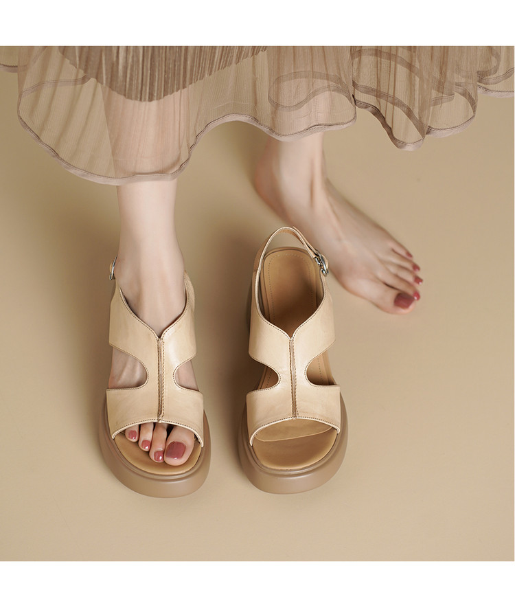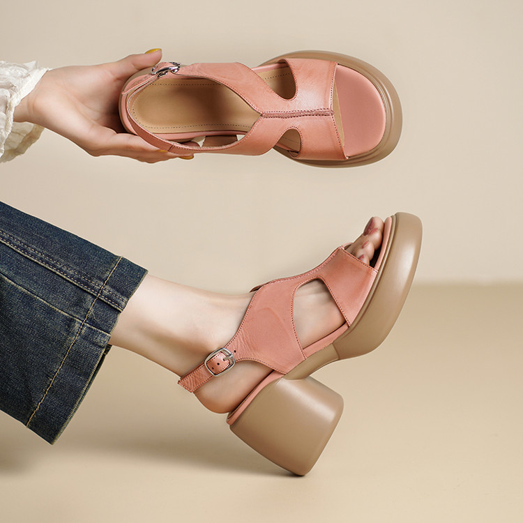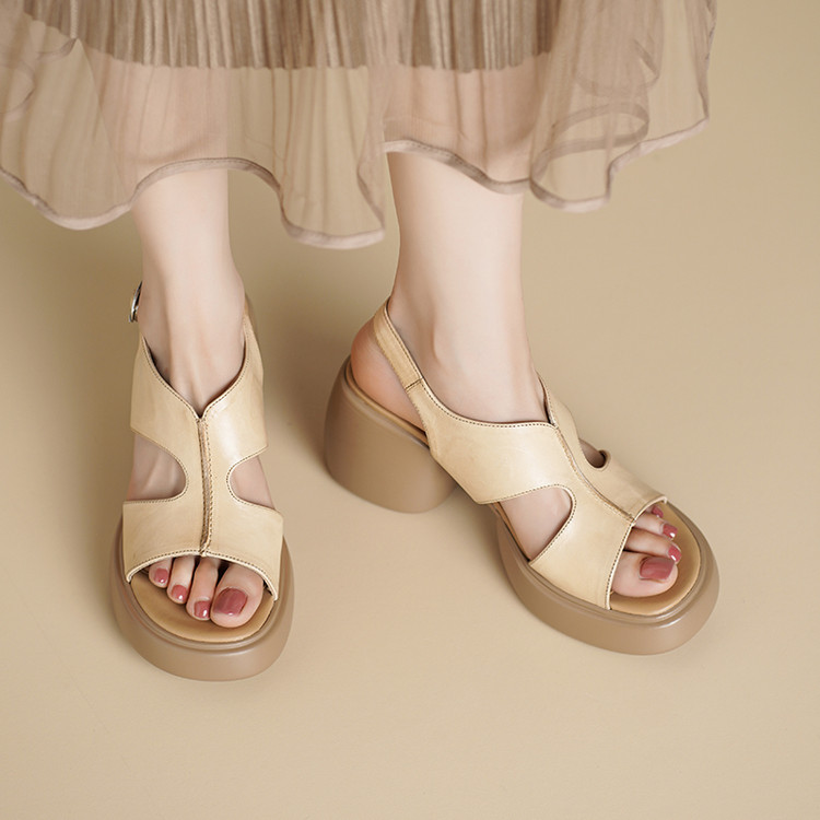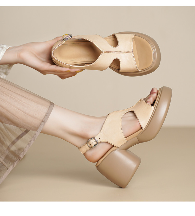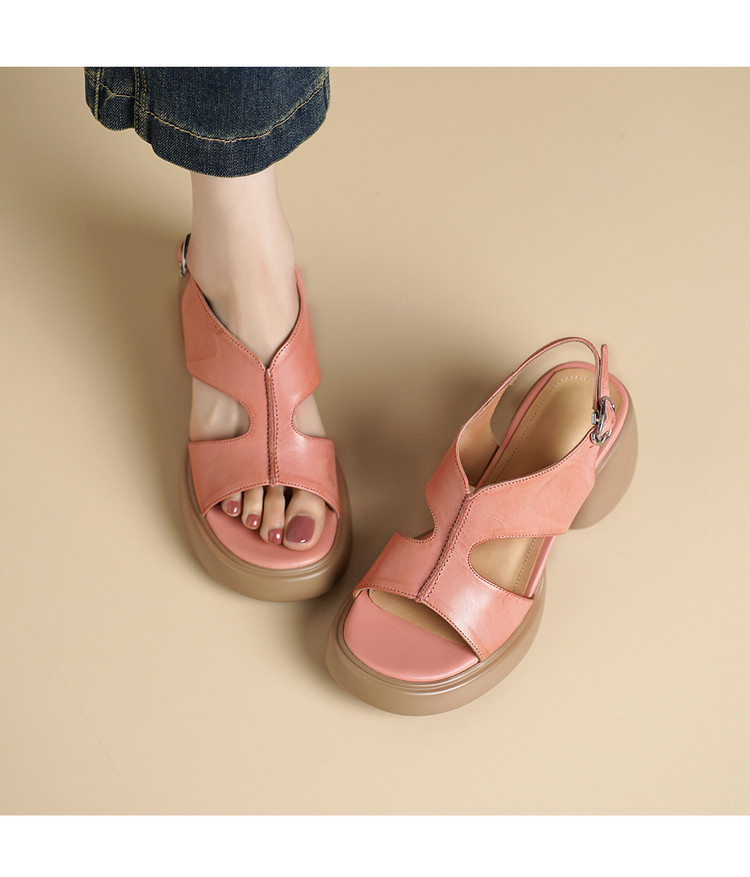 【预售5天】真皮小个子高跟凉鞋女夏季外穿配裙子防水台厚底松糕罗马鞋GP&3281
