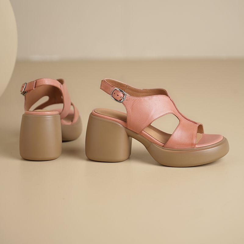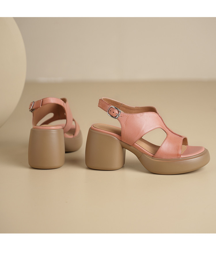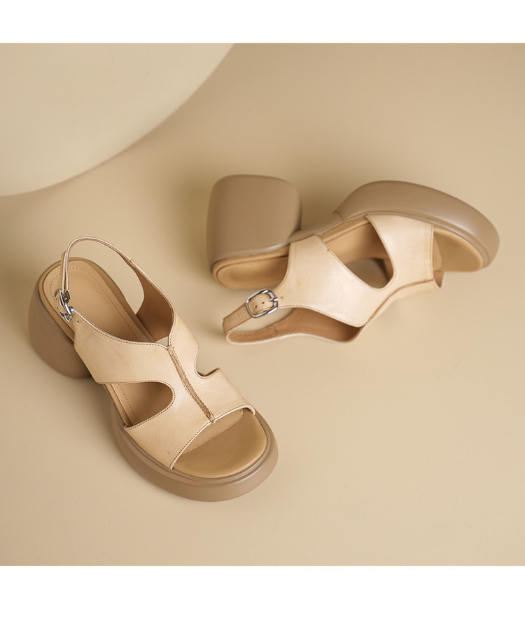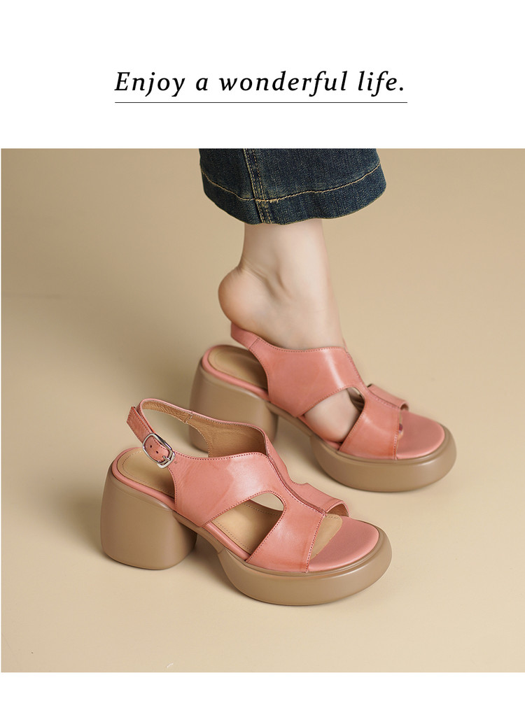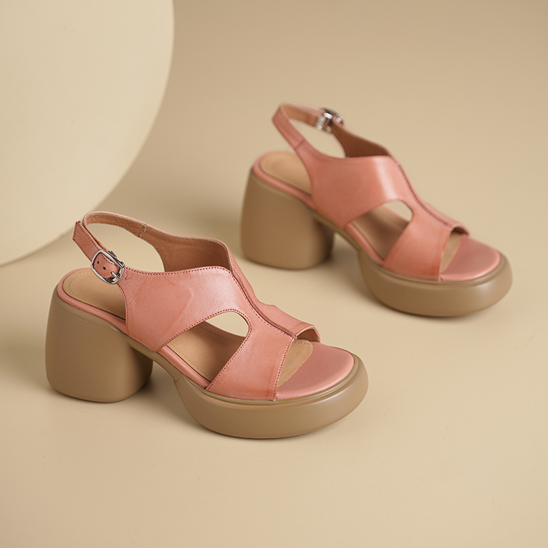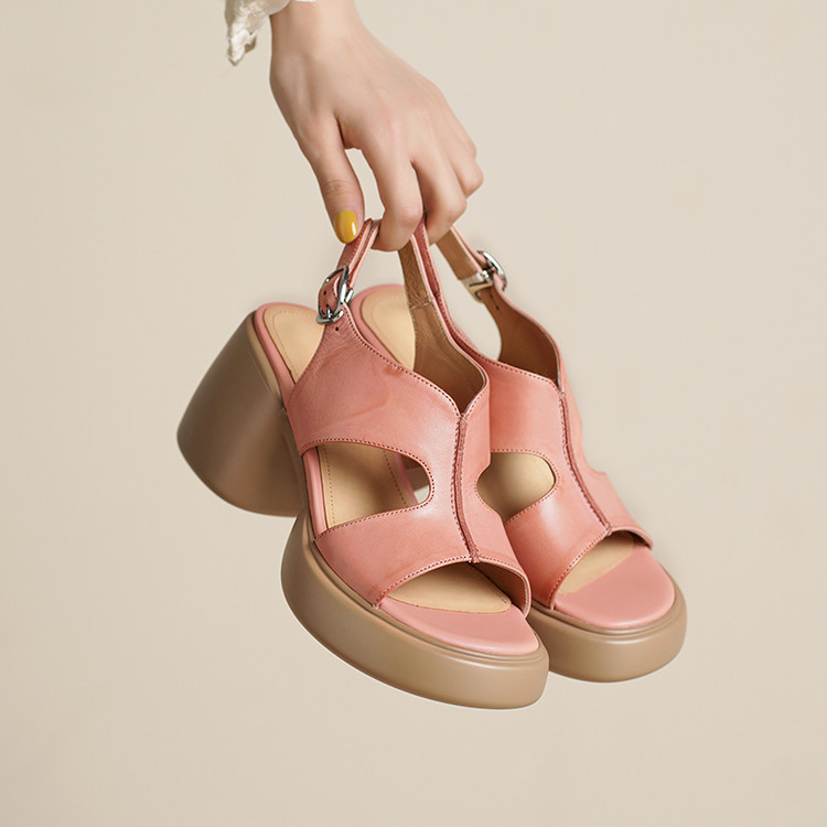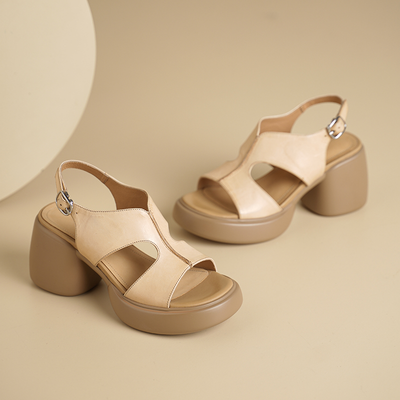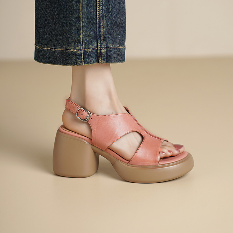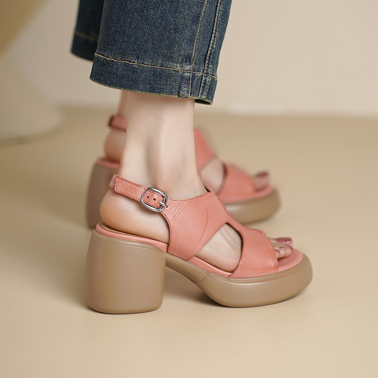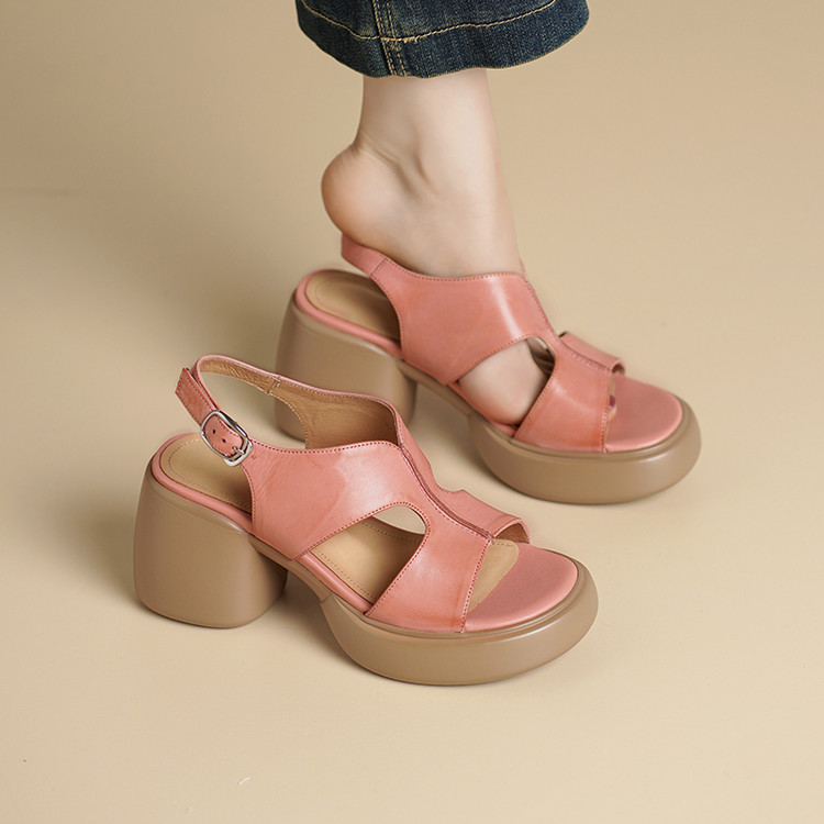 【预售5天】真皮小个子高跟凉鞋女夏季外穿配裙子防水台厚底松糕罗马鞋GP&3281