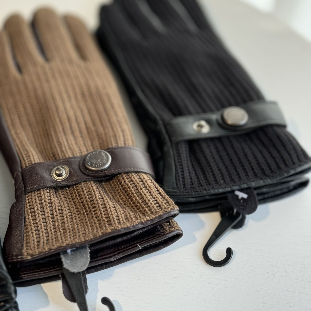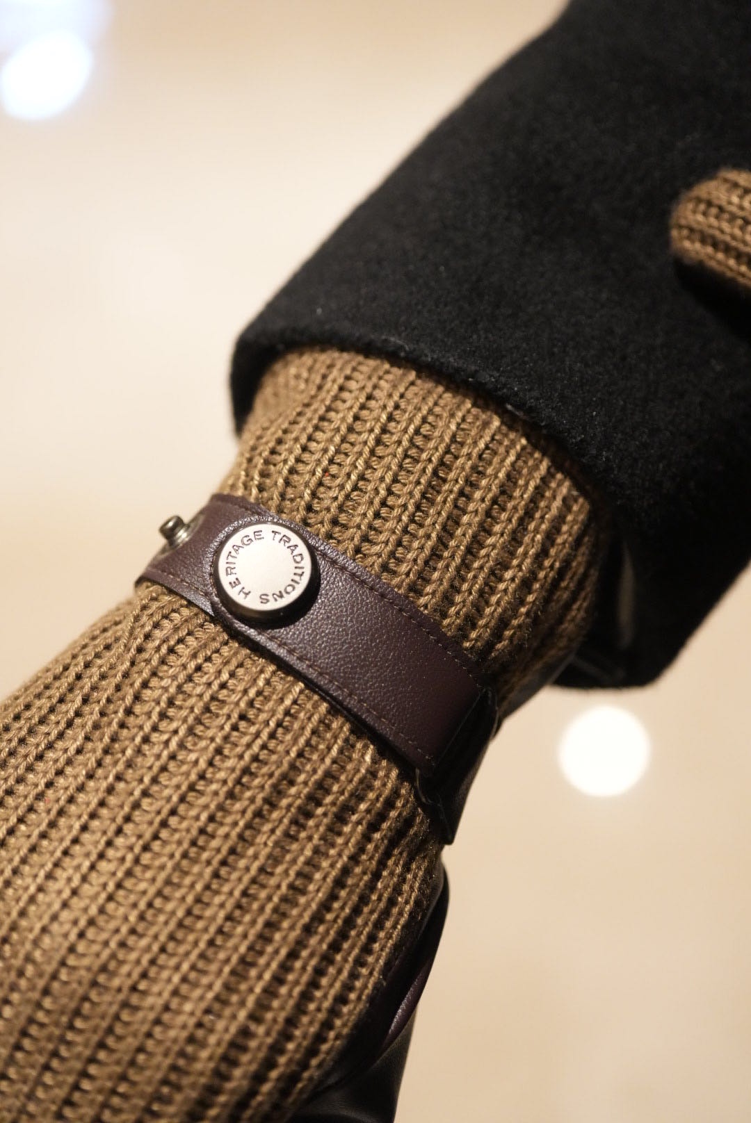 女款手套真的超好看!整体采用拼接转撞色设计!正面采用移模的纳帕革材质,背面则采用了毛线编制工艺,这种质感上的拼接真的非常吸引眼球,搭配毛衣或者大衣真的非常赞!女士的环扣设计则可以更好的修饰手型纽扣则采用全铝压制工艺轻便又很有厚实的质感