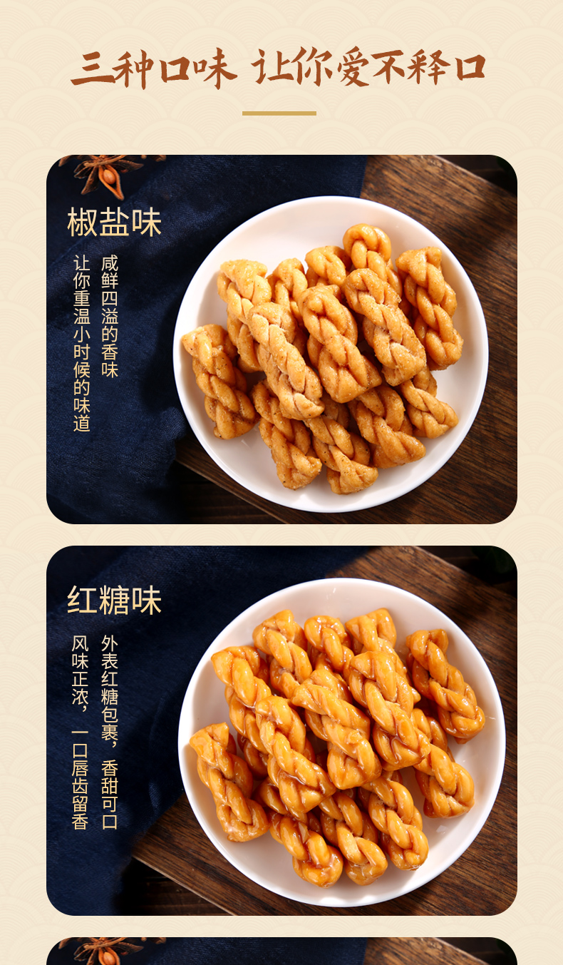 【西瓜味的童话】爽口小麻花 闲时零食开袋即食椒盐 红糖 香葱口味小麻花