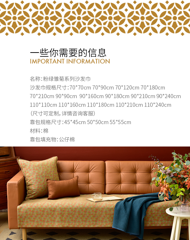粉绿雏菊系列沙发巾防滑四季通用沙发垫