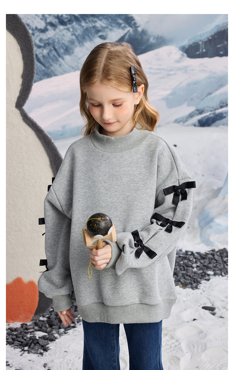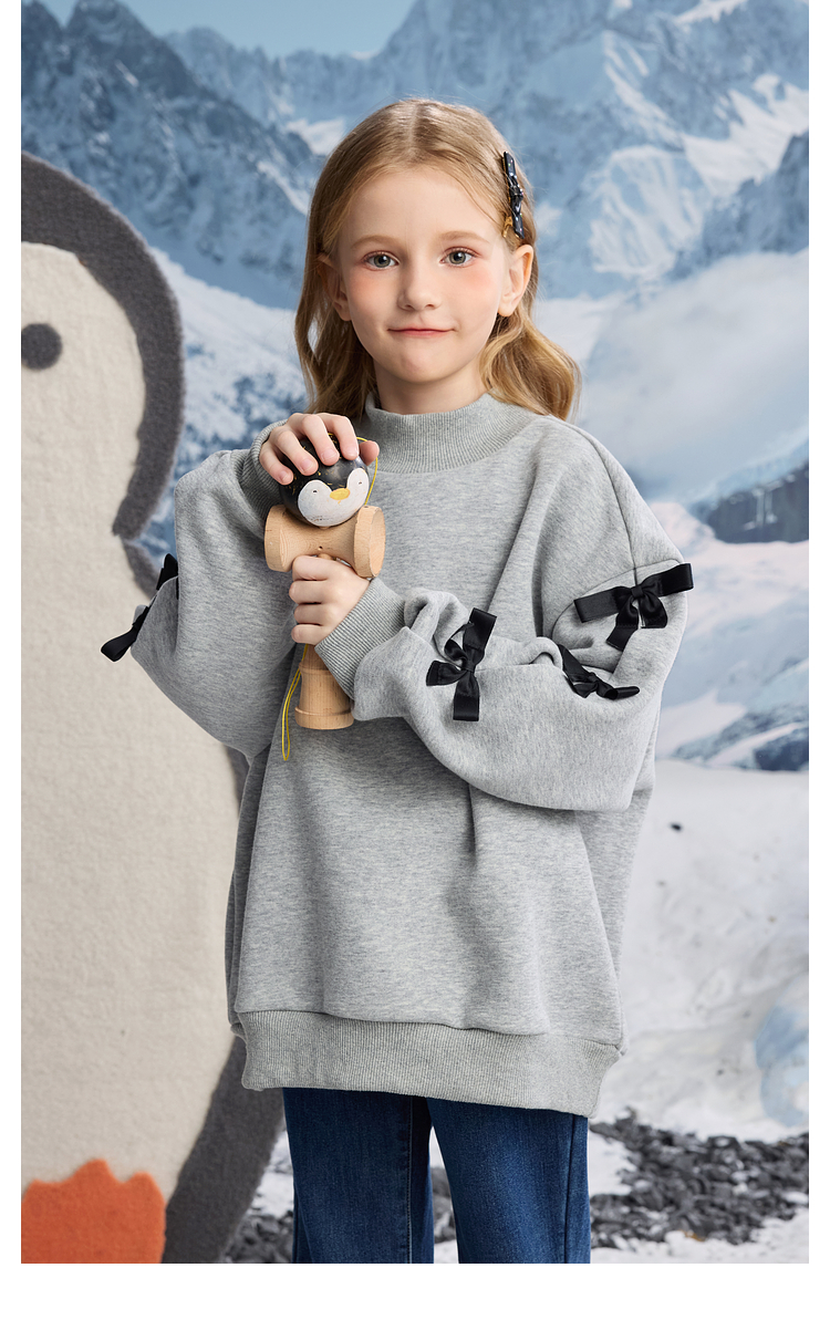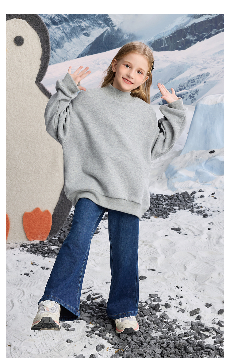 【MQD】冬季新品女大童潮酷休闲运动加绒保暖半高领卫衣