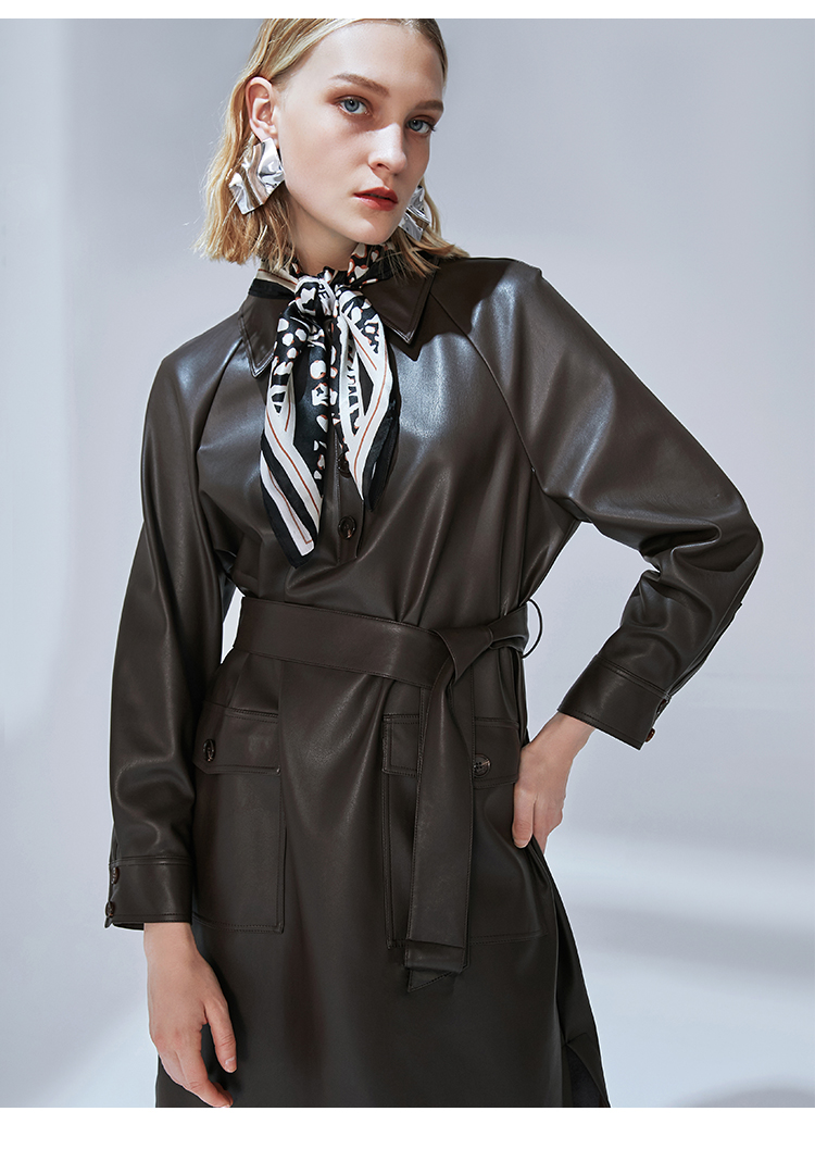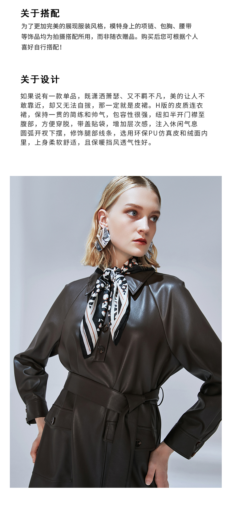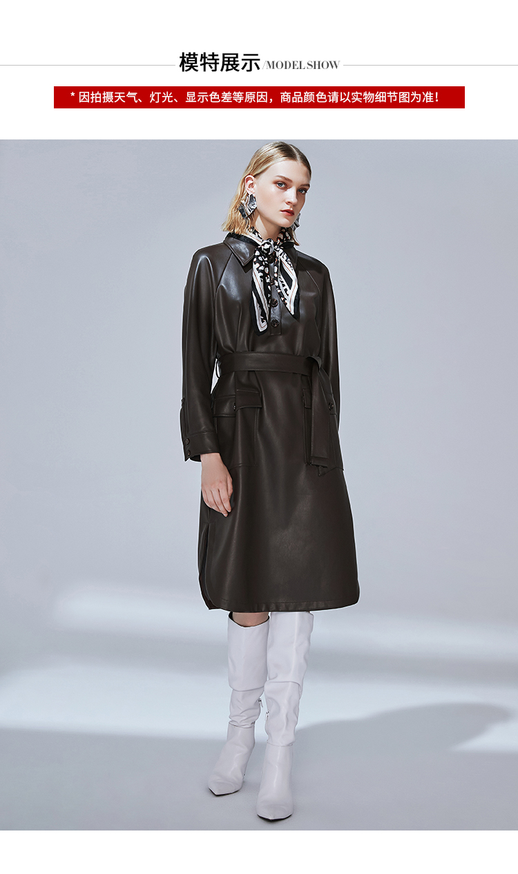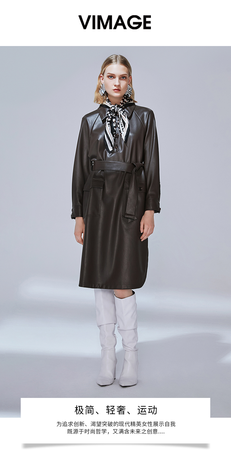 下架脱皮-VIMAGE纬漫纪品牌女装冬款气质翻领时尚收腰显瘦PU连衣裙V1407033