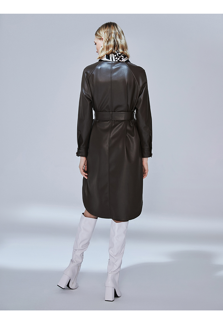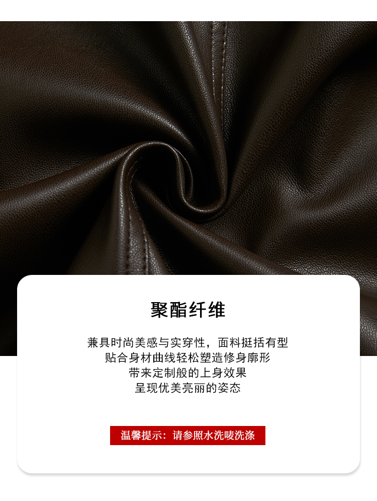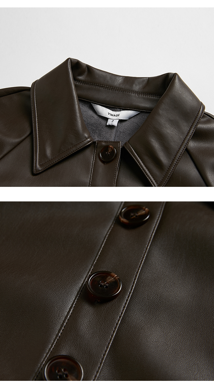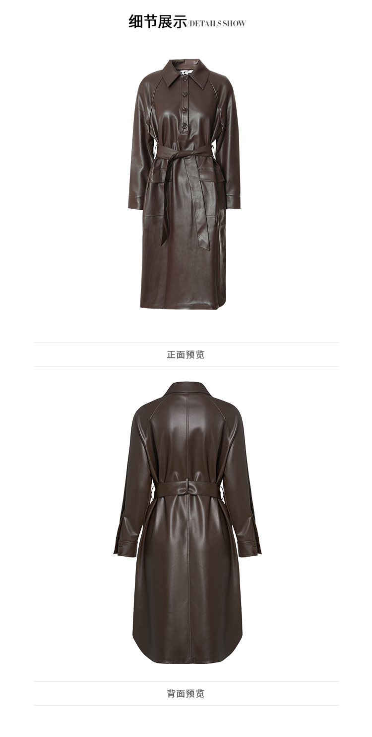 下架脱皮-VIMAGE纬漫纪品牌女装冬款气质翻领时尚收腰显瘦PU连衣裙V1407033