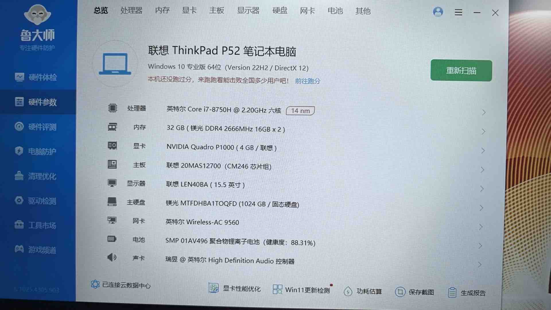 【95新】ThinkPad P52 移动工作站 i7-8750 32G 1T 图形显卡P1000 4G