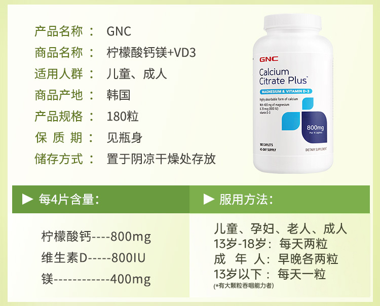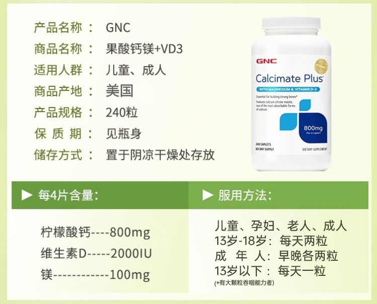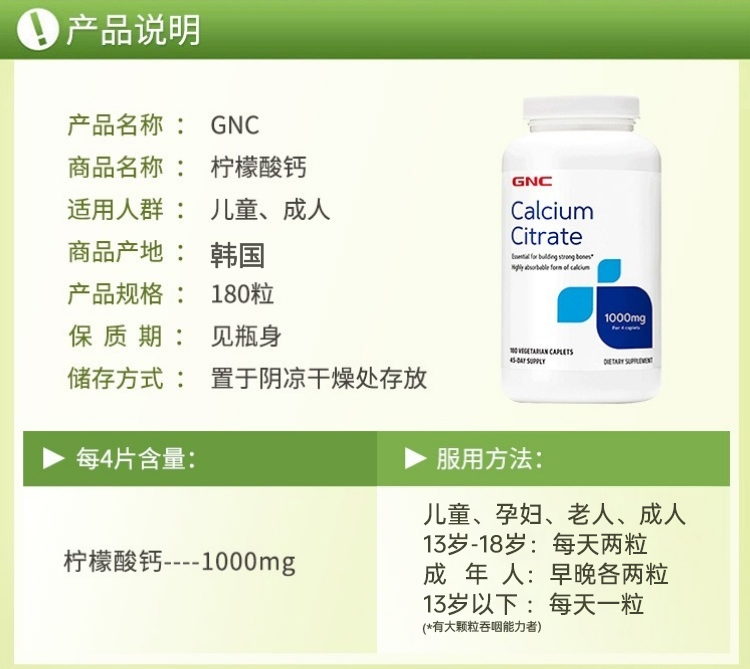 【品牌直发 宁波北仑】GNC柠檬酸钙高吸收复合片