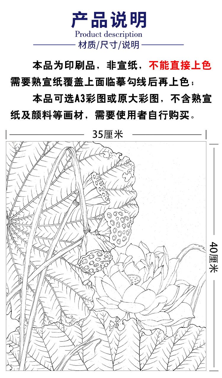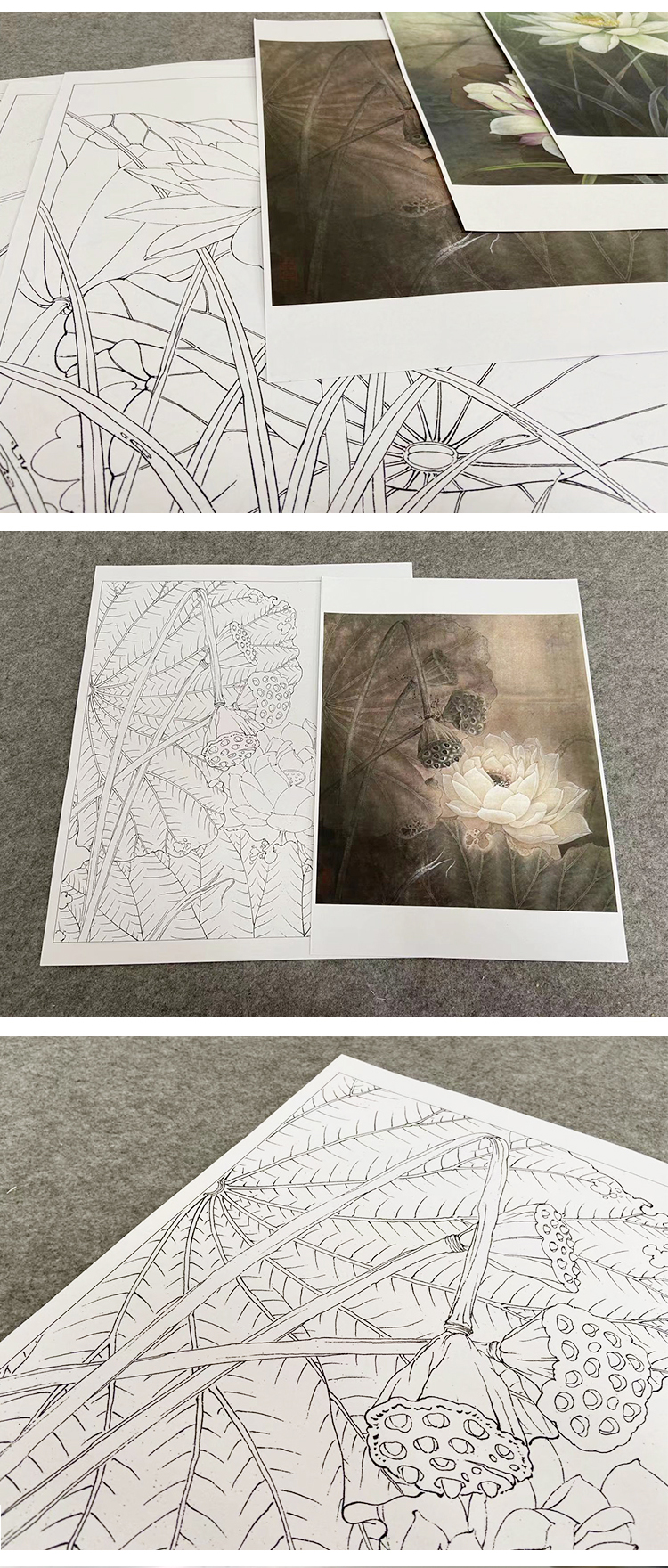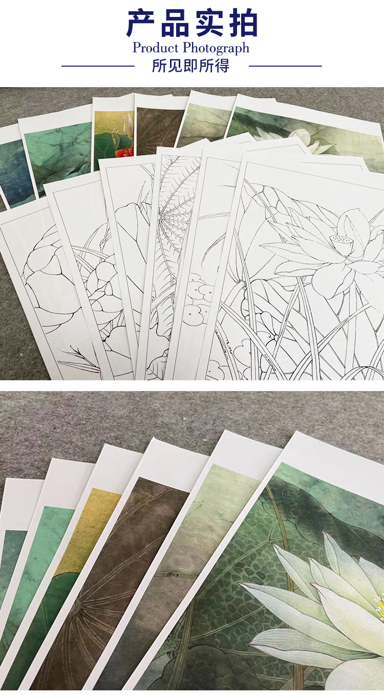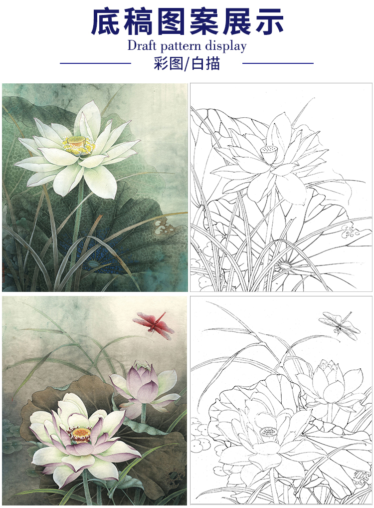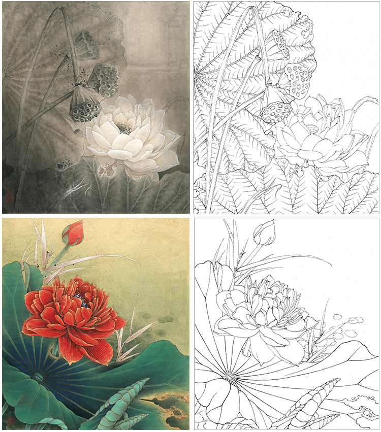 李晓明工笔花鸟画白描底稿荷花一套六幅册页尺寸35×40厘米花鸟线稿KF26