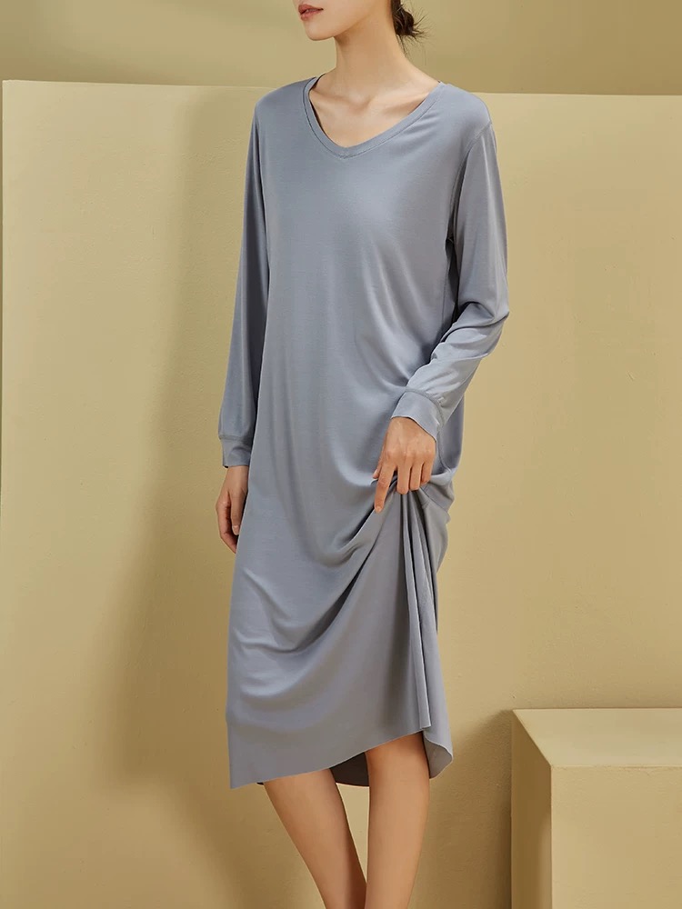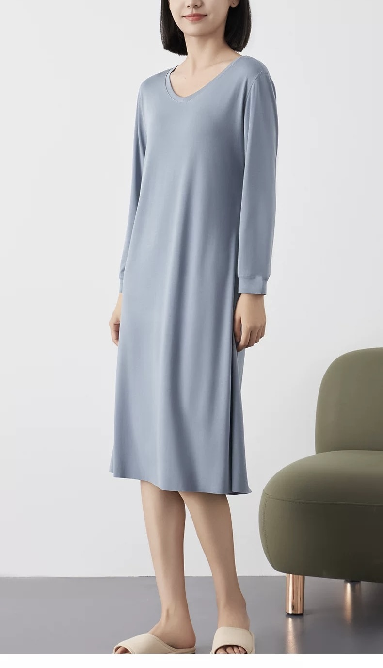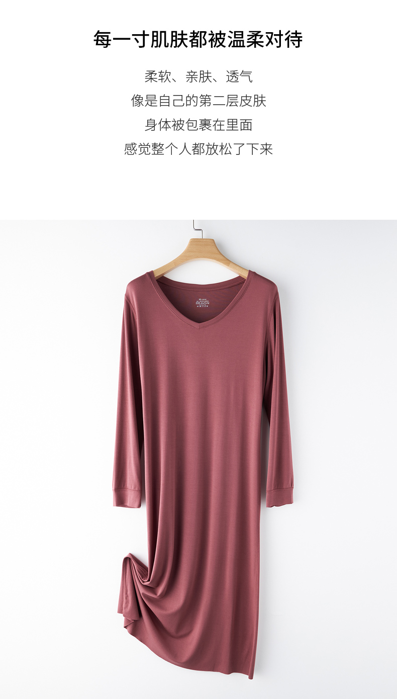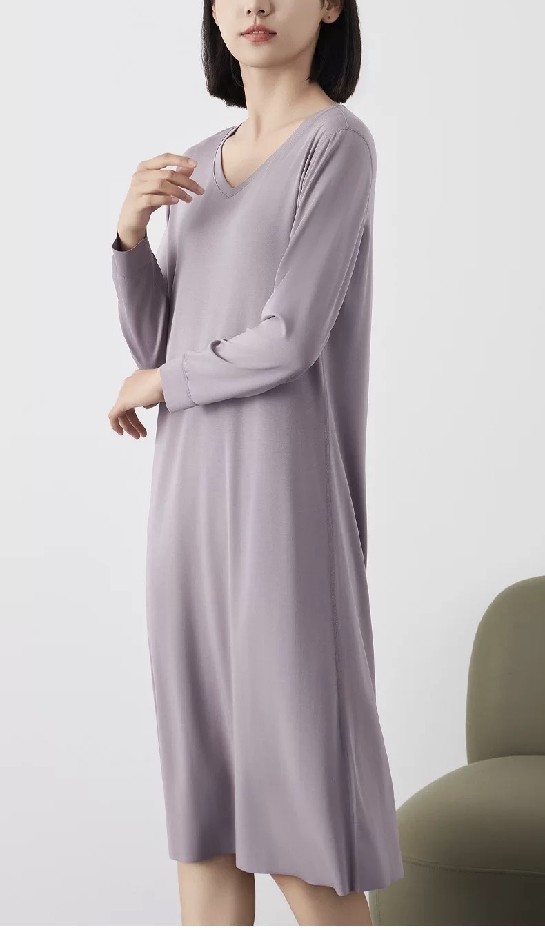 【居家舒适】卷卷紫女士兰精莫代尔V领长袖连衣裙家居服/睡衣 轻柔舒适透气 极简百搭不挑身材