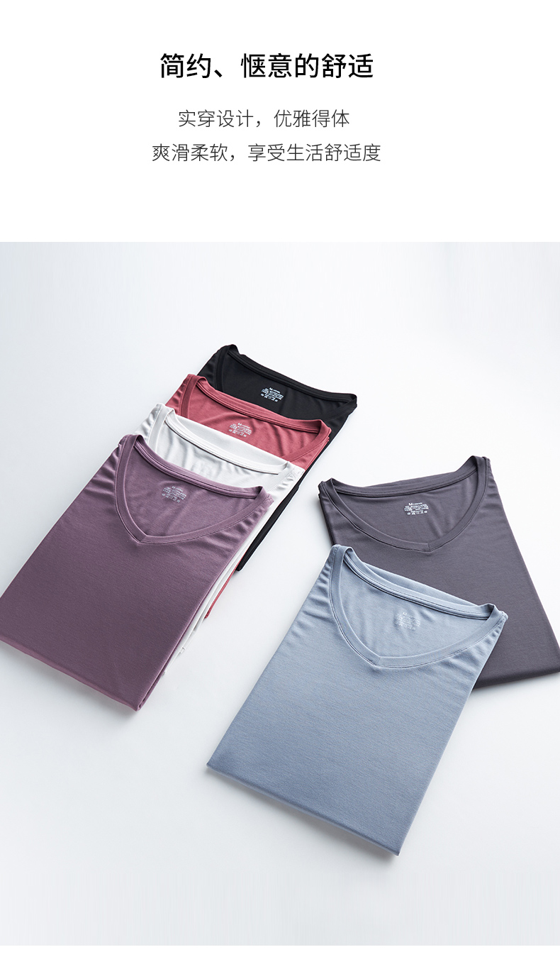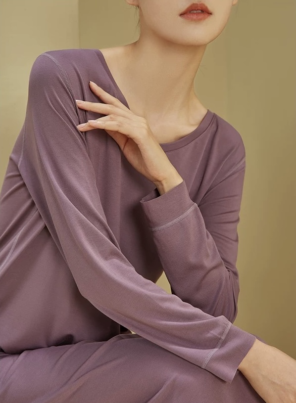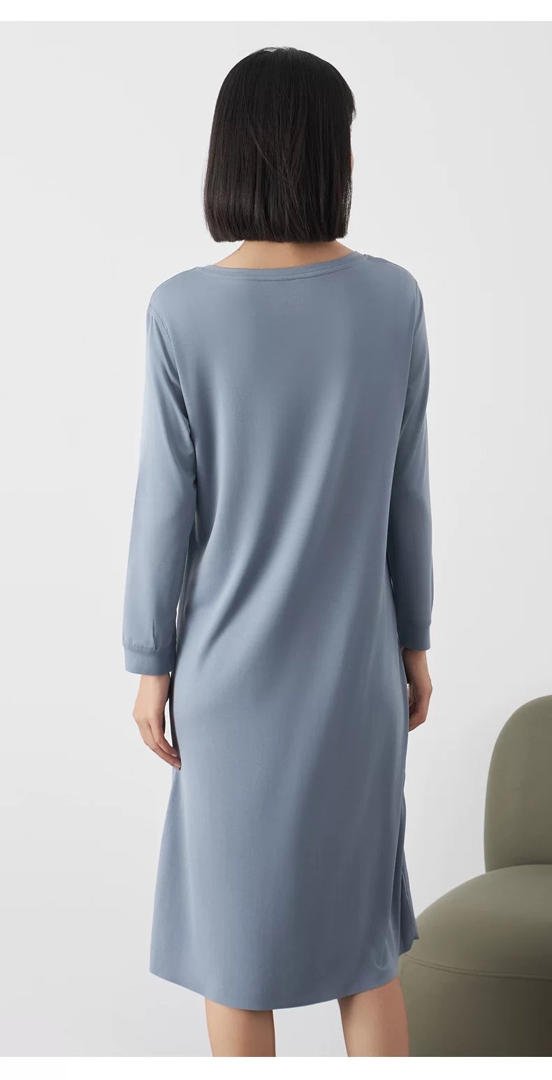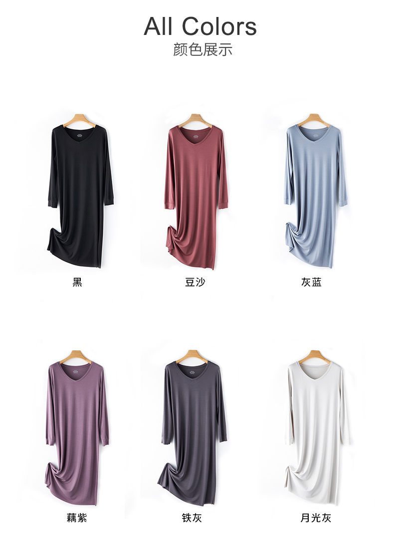 【居家舒适】卷卷紫女士兰精莫代尔V领长袖连衣裙家居服/睡衣 轻柔舒适透气 极简百搭不挑身材