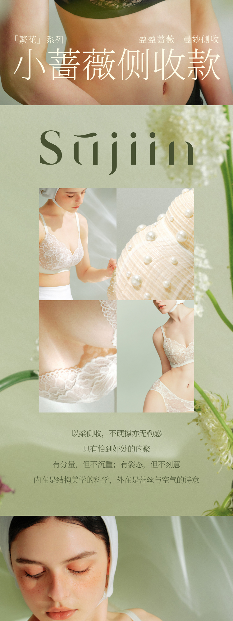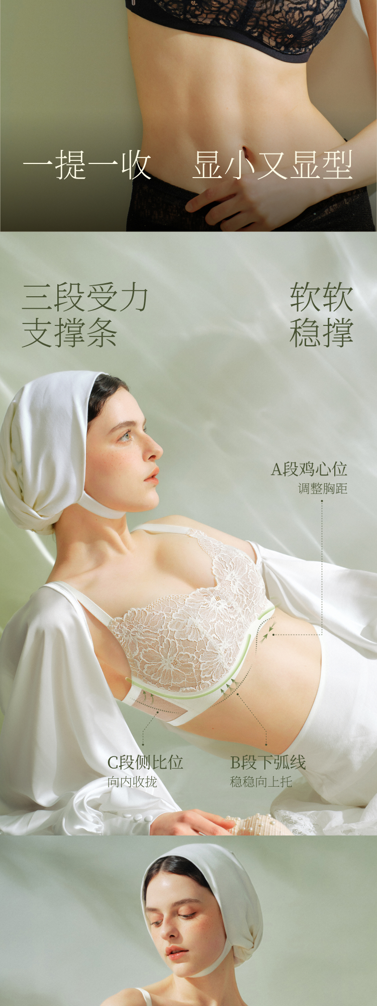 【E】【小蔷薇侧收款】素肌良品大胸显小内衣女蕾丝收副乳防下垂文胸 大胸款MX351