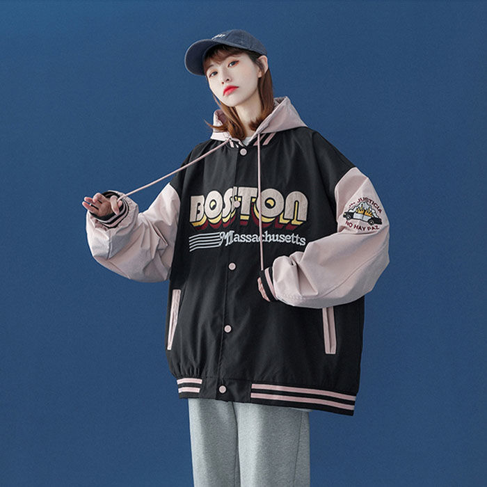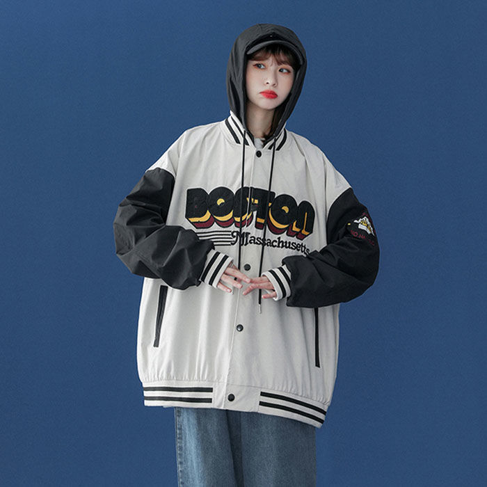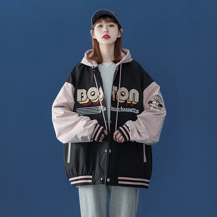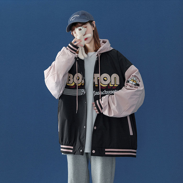 撞色棒球服女ins潮宽松韩版盐系这届学生百搭原宿风外套2021新款
