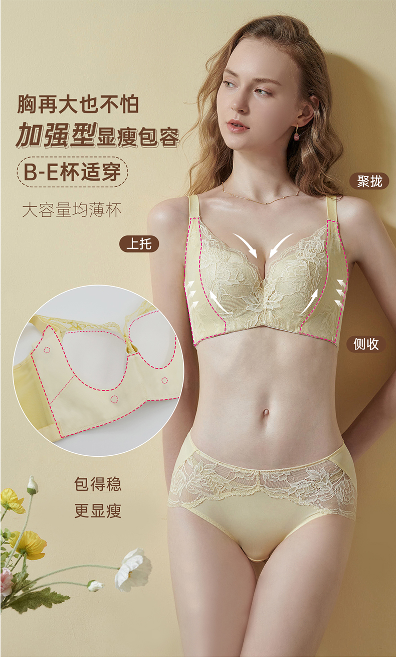 贝佳人正品宽肩带缓压提拉托胸大胸罩杯包容性感蕾丝文胸