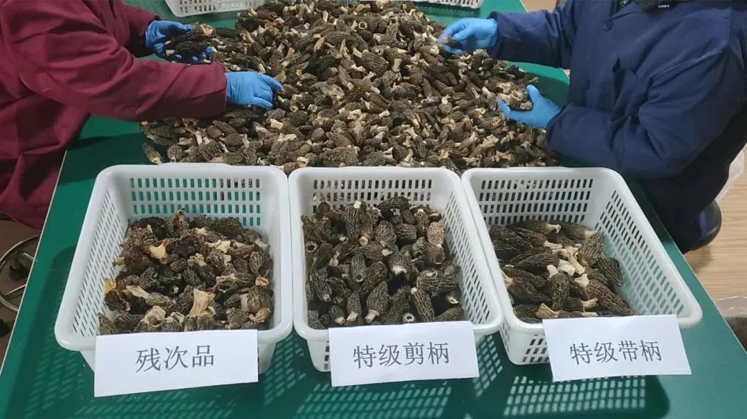自然烘干后的羊肚菌会再次进行手工甄选:去除泥柄、磕除泥沙,保证品质的同时也要追求质量。