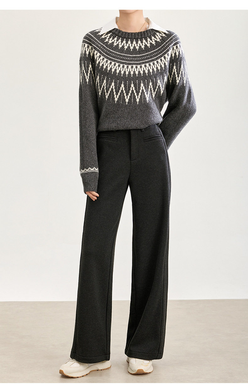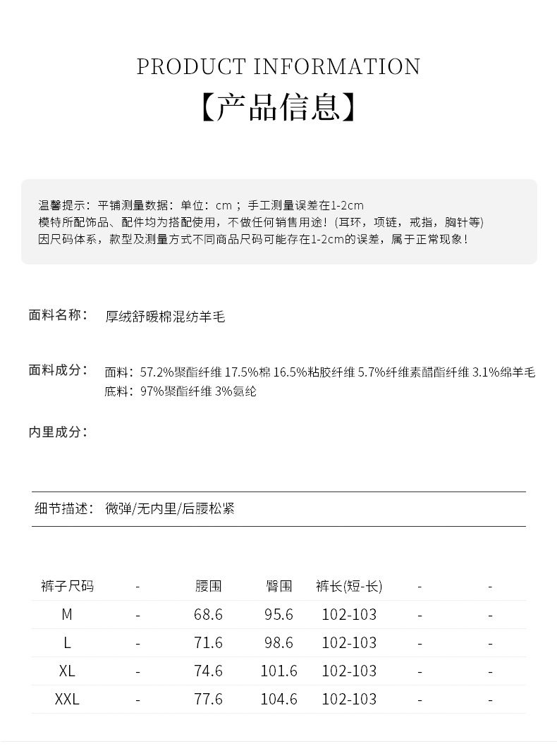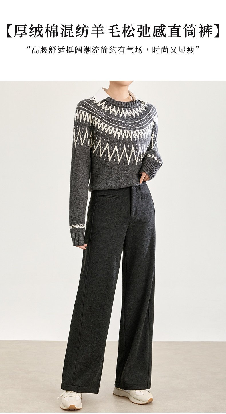 「高货wl」全新升级【铂金会员257/天猫339/差价82】(05334)洛诗琳厚绒舒暖棉混纺羊毛直筒裤2025秋冬高腰休闲阔腿裤