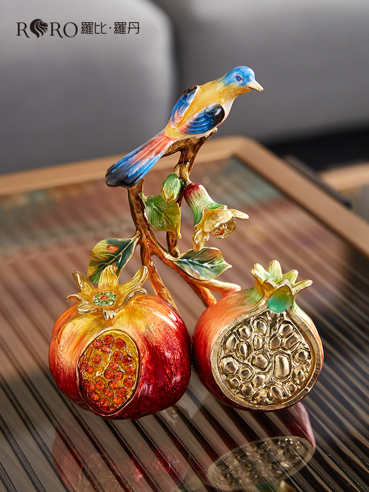 【彼达思】罗比罗丹 喜乐多福 小 摆件 喜鹊石榴珐琅彩轻奢