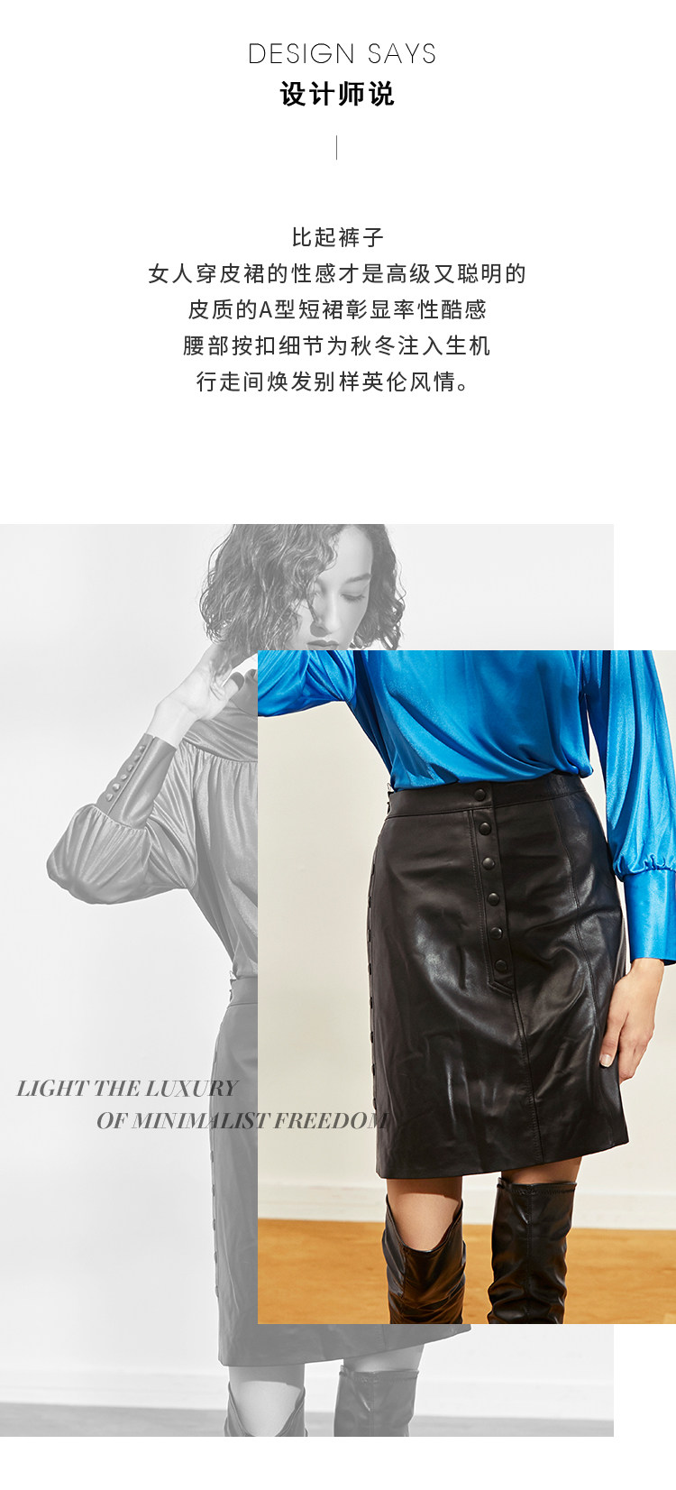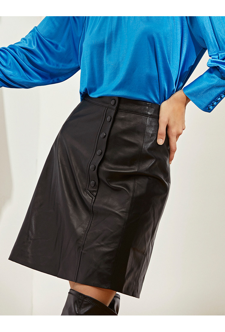 VIMAGE纬漫纪秋冬时尚纽扣装饰机车小皮裙A字短裙半身裙V1293807
