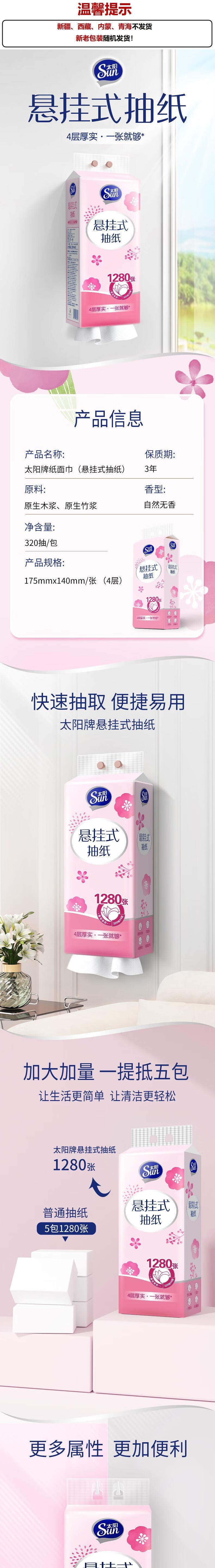 太阳 中顺洁柔悬挂式抽纸4层320抽(1280张)*4提 GH320-04S