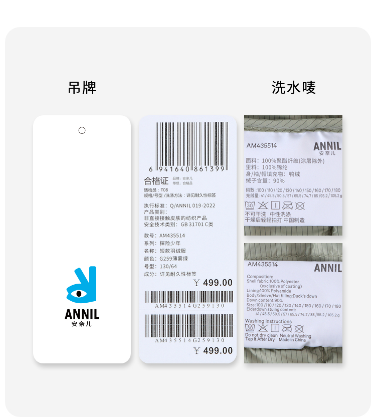 【轻薄5~15℃】男女童蓄热三防短款羽绒外套新款安奈儿童装实体店同款AM435514