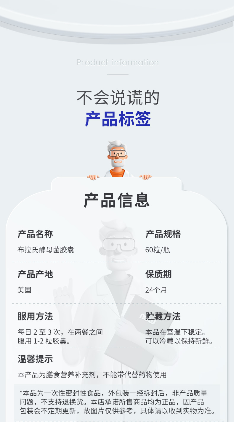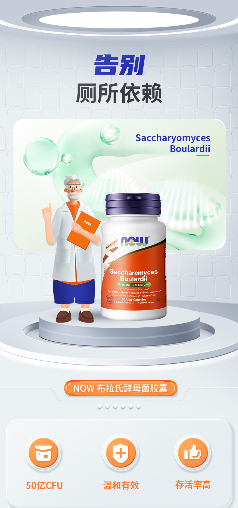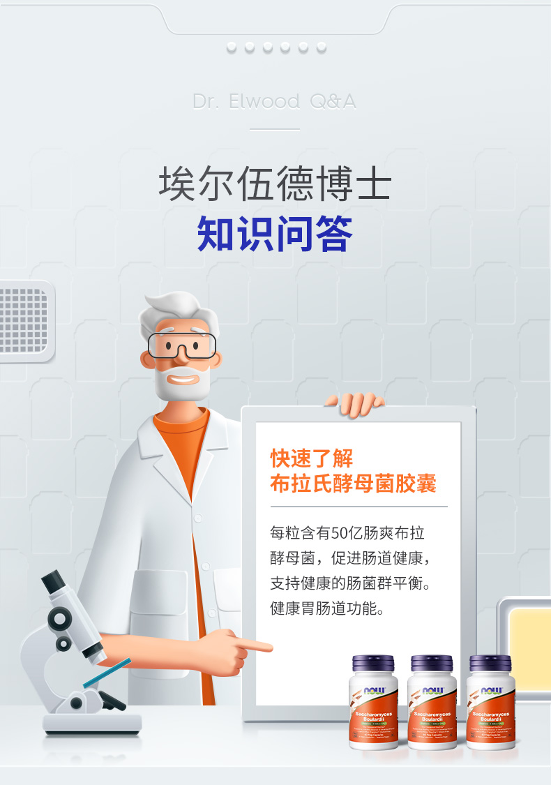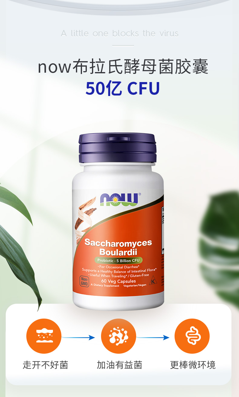 NOW诺奥布拉酵母菌益生菌60粒/瓶胃肠道益生菌美国进口