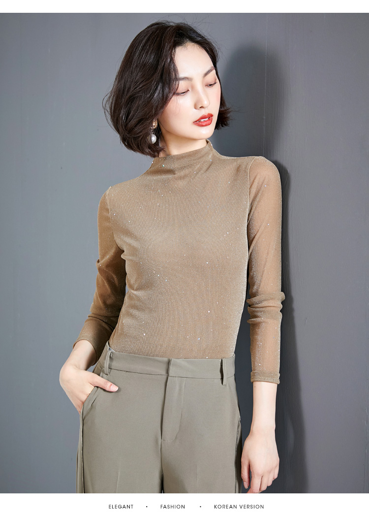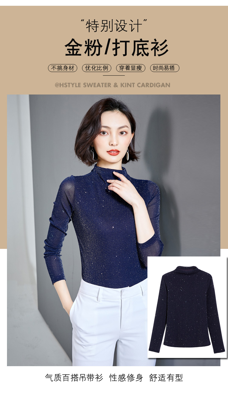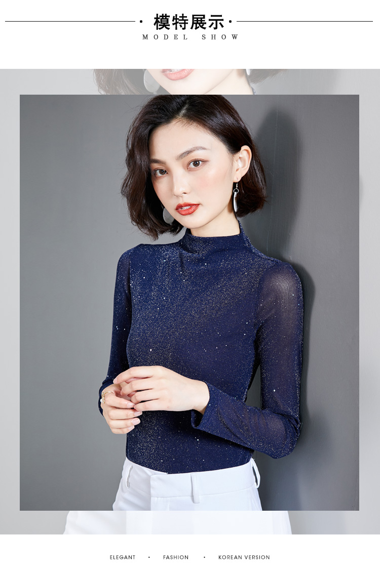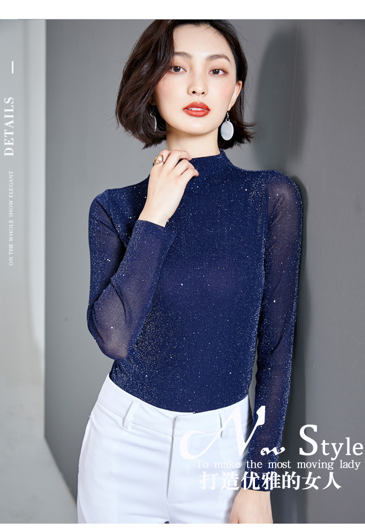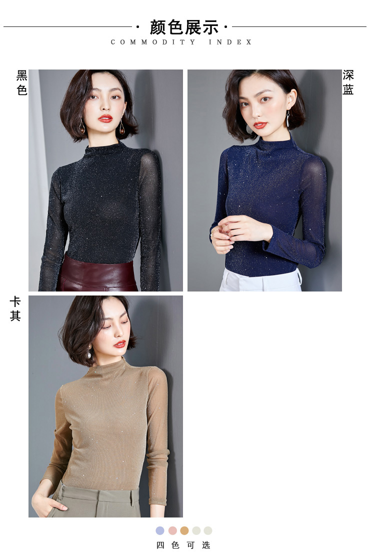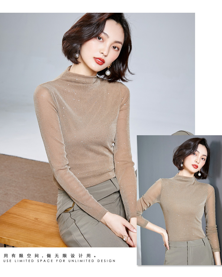 雀说 高领网纱打底衫女秋冬内搭闪光丝洋气小衫亮丝上衣女4ZF-MZ803602