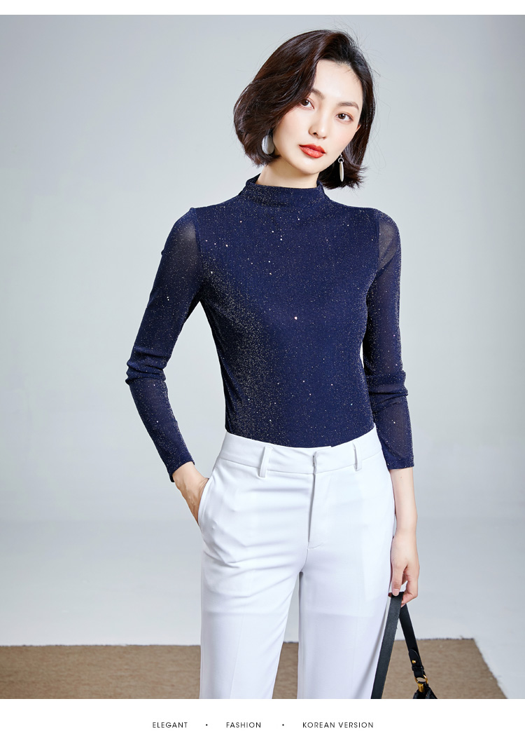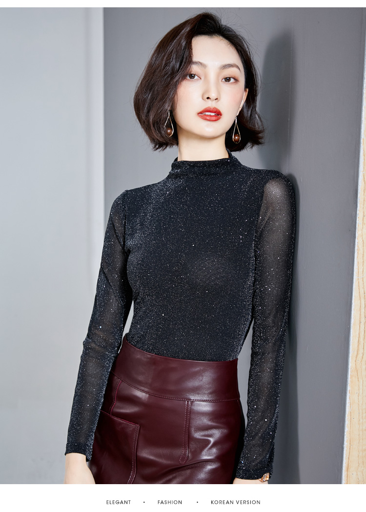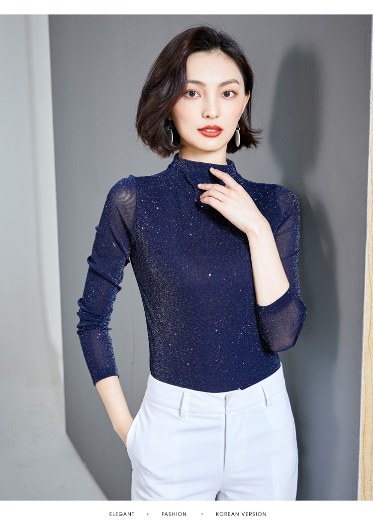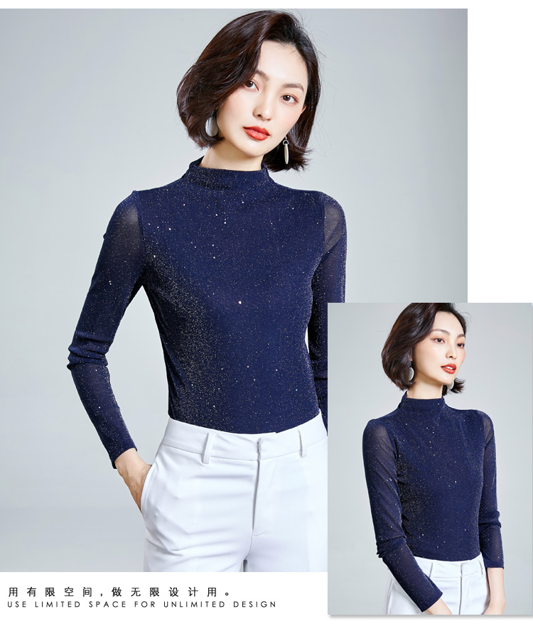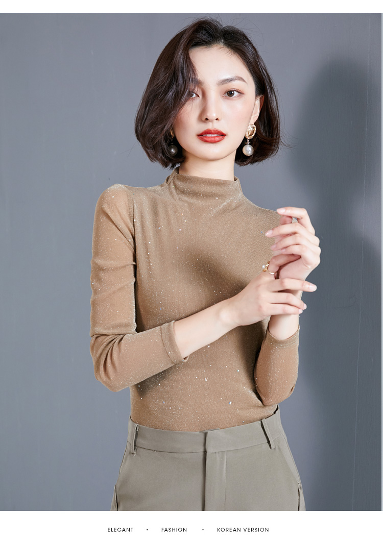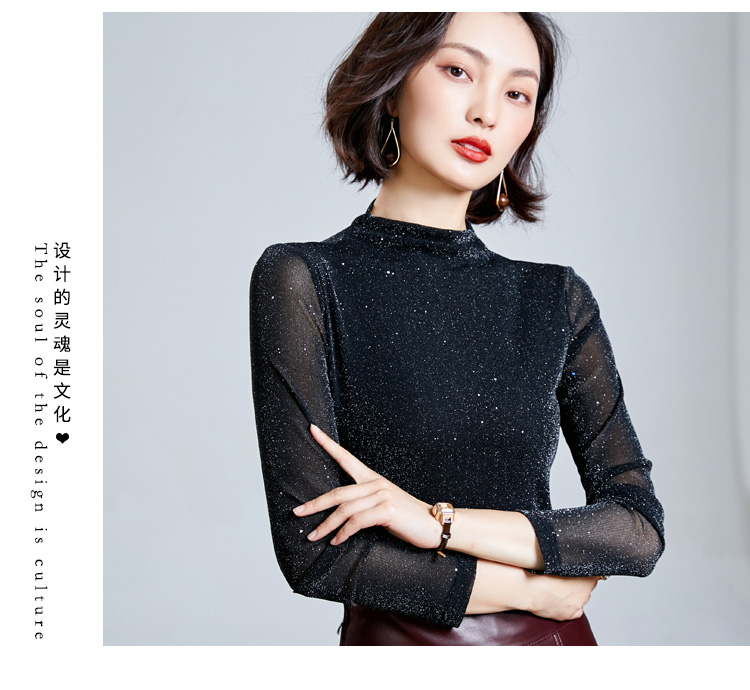 雀说 高领网纱打底衫女秋冬内搭闪光丝洋气小衫亮丝上衣女4ZF-MZ803602