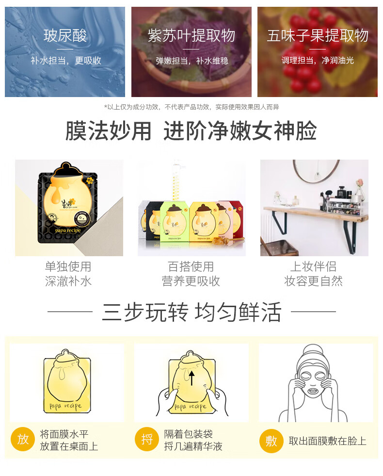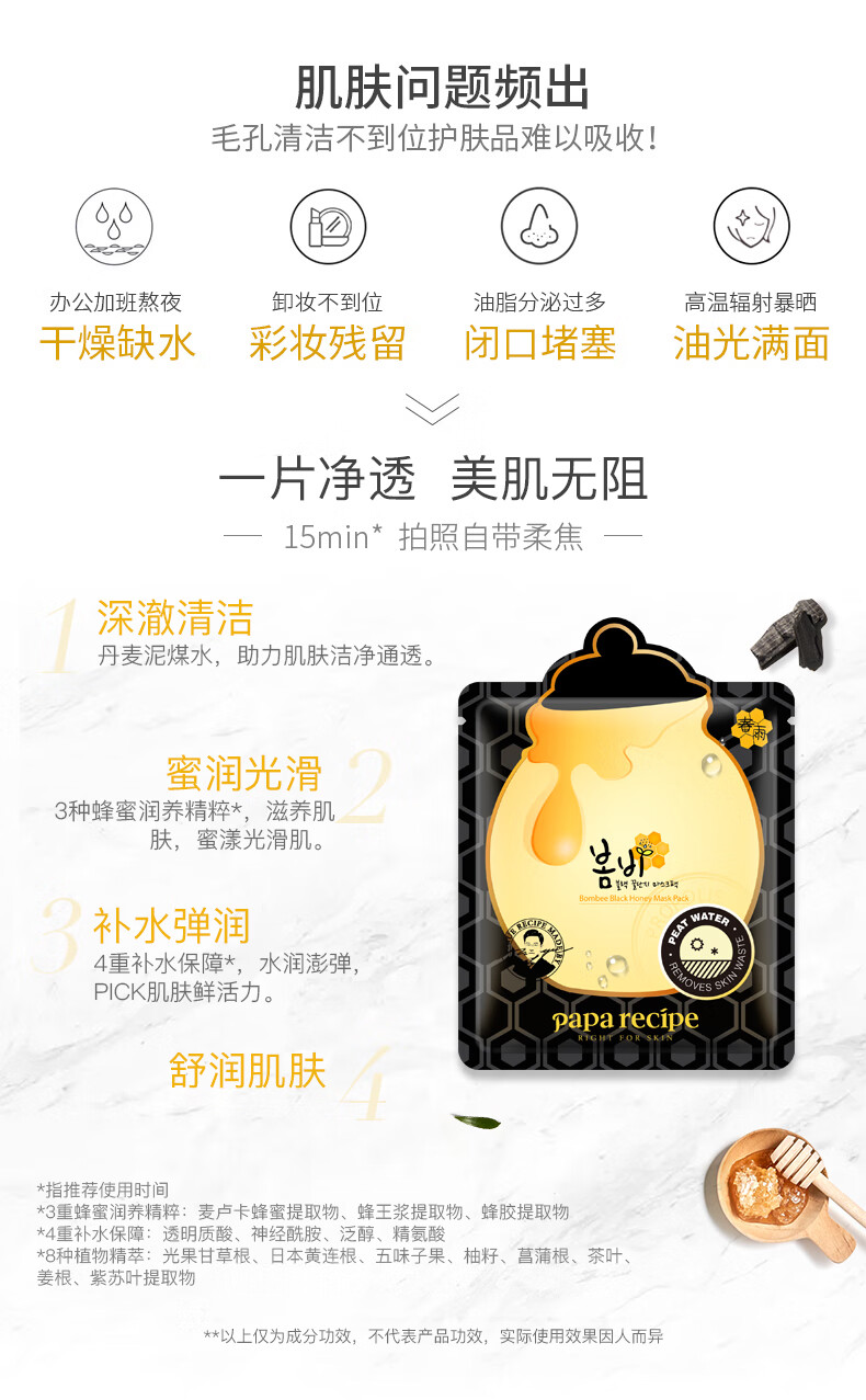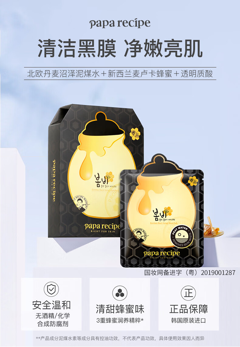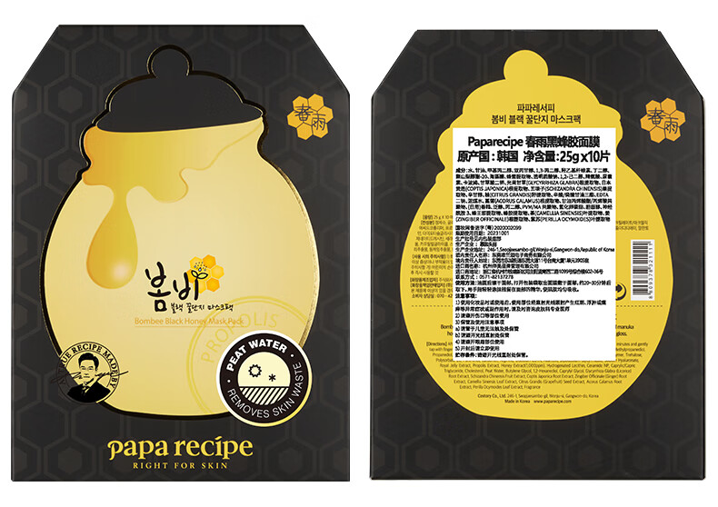 韩国春雨(Papa recipe)黑色麦卢卡蜂胶清洁面膜10片/盒