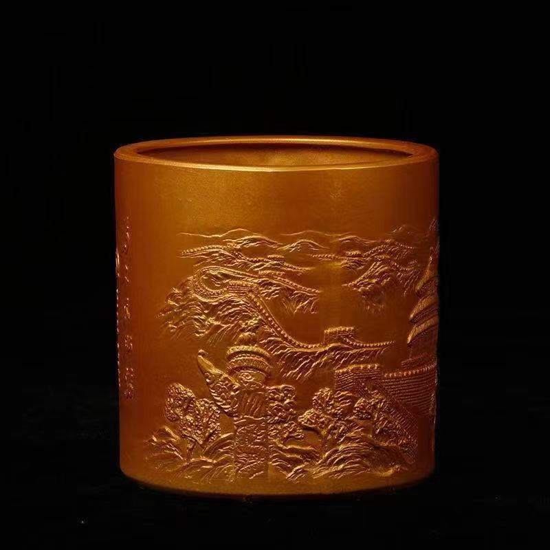 《建党伟业·锦绣山河》陶瓷浮雕笔筒