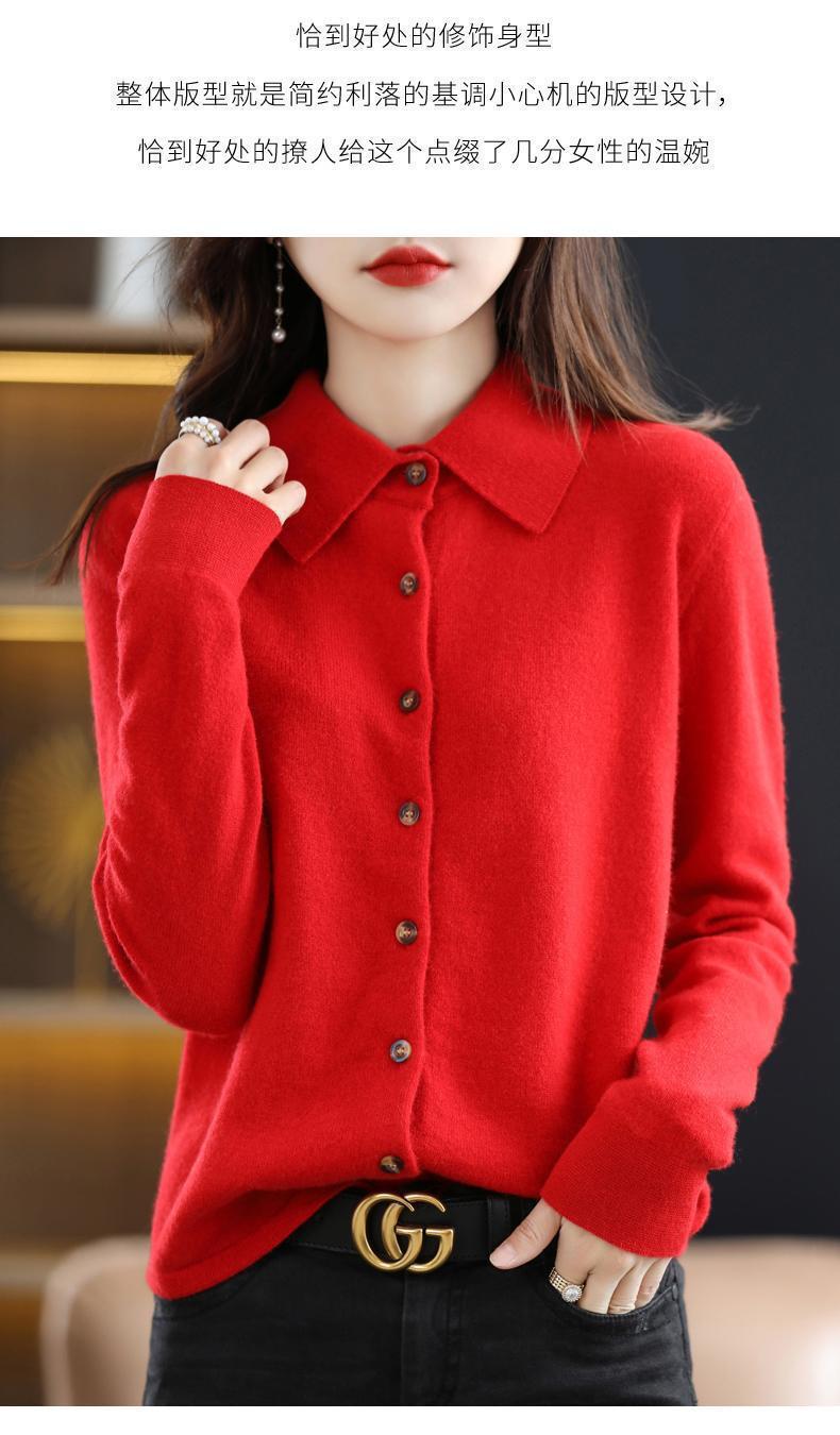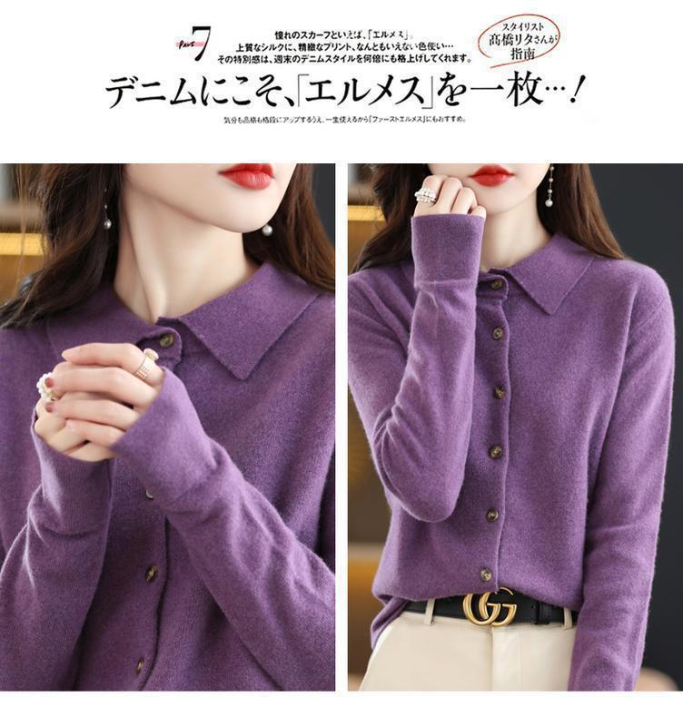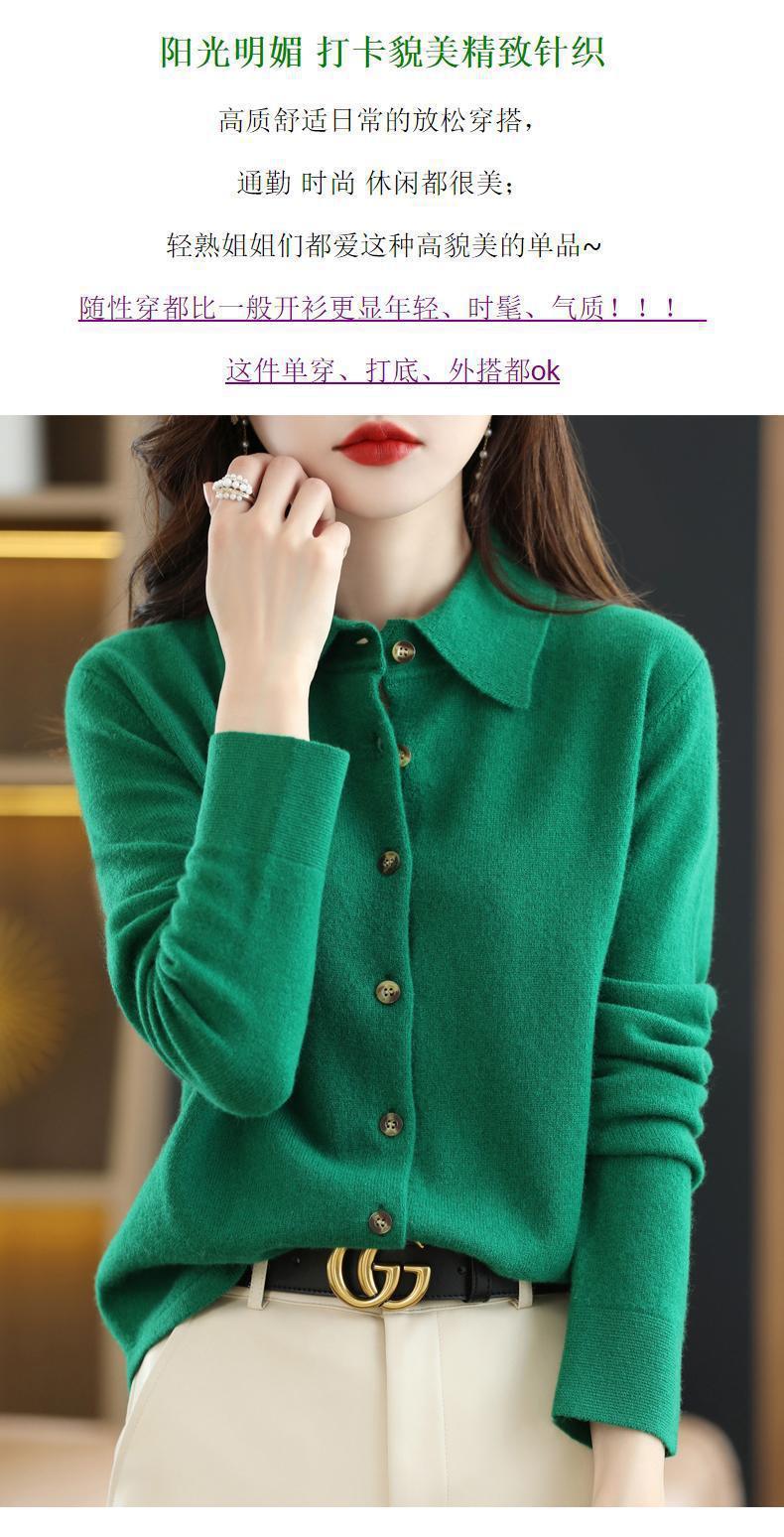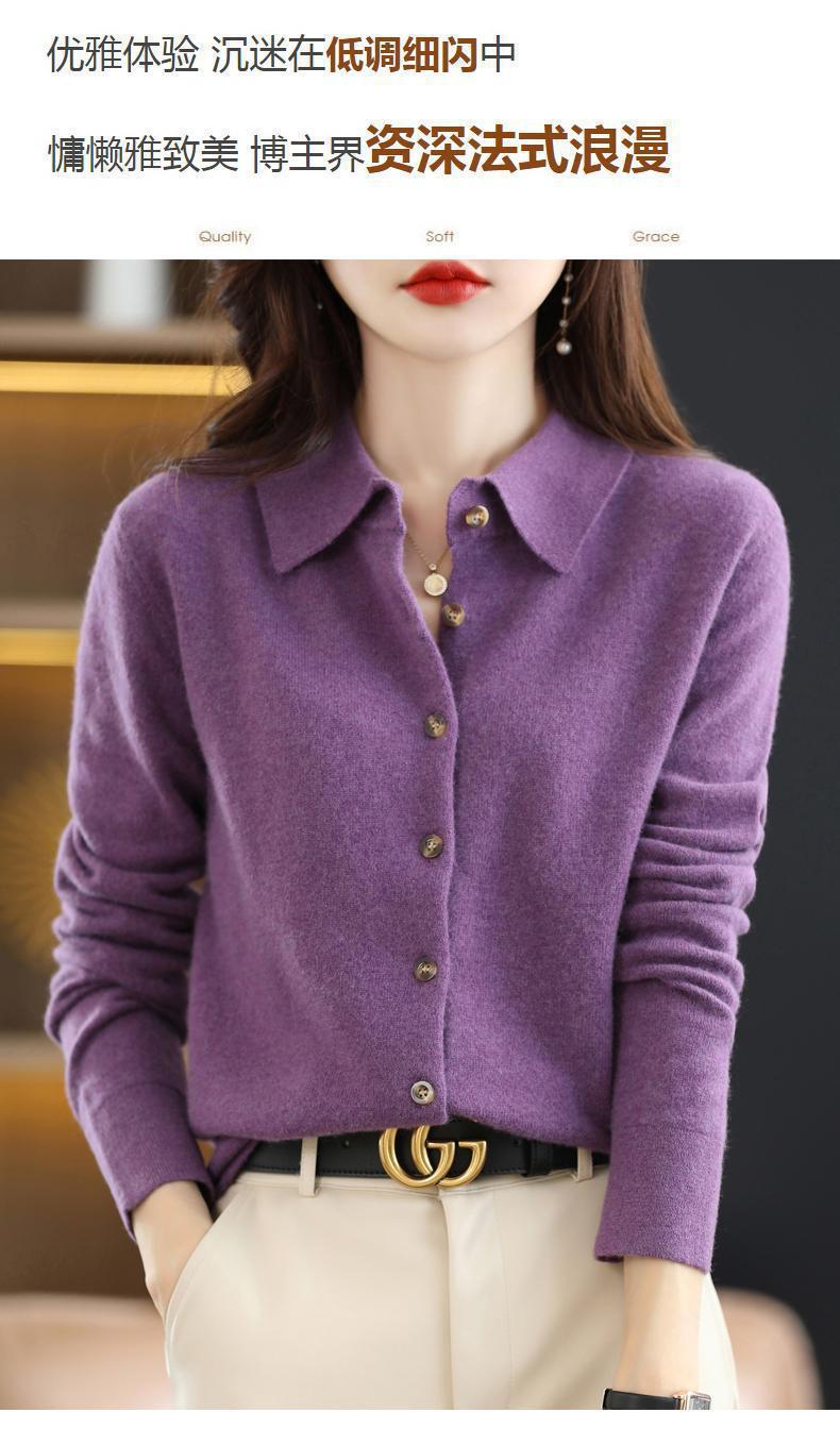 春秋POLO领针织衬衫外搭宽松长袖毛衣开衫气质翻领外套 QH-DMR430