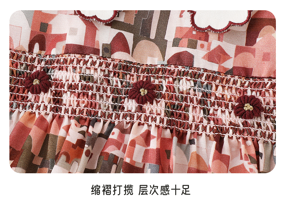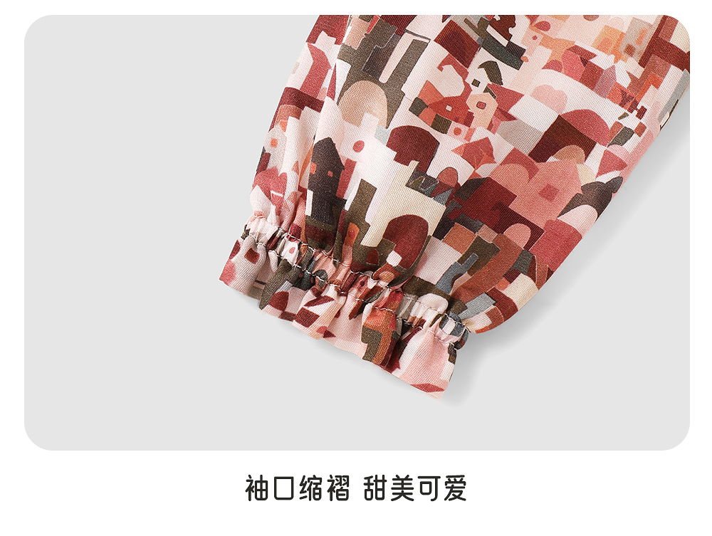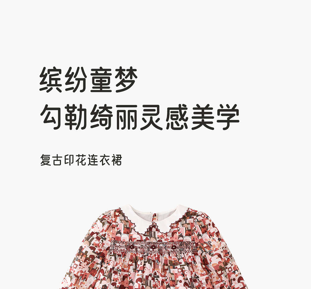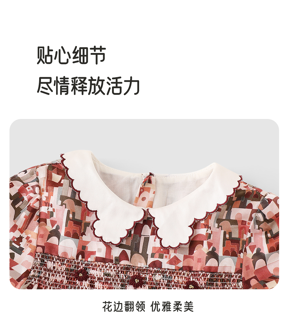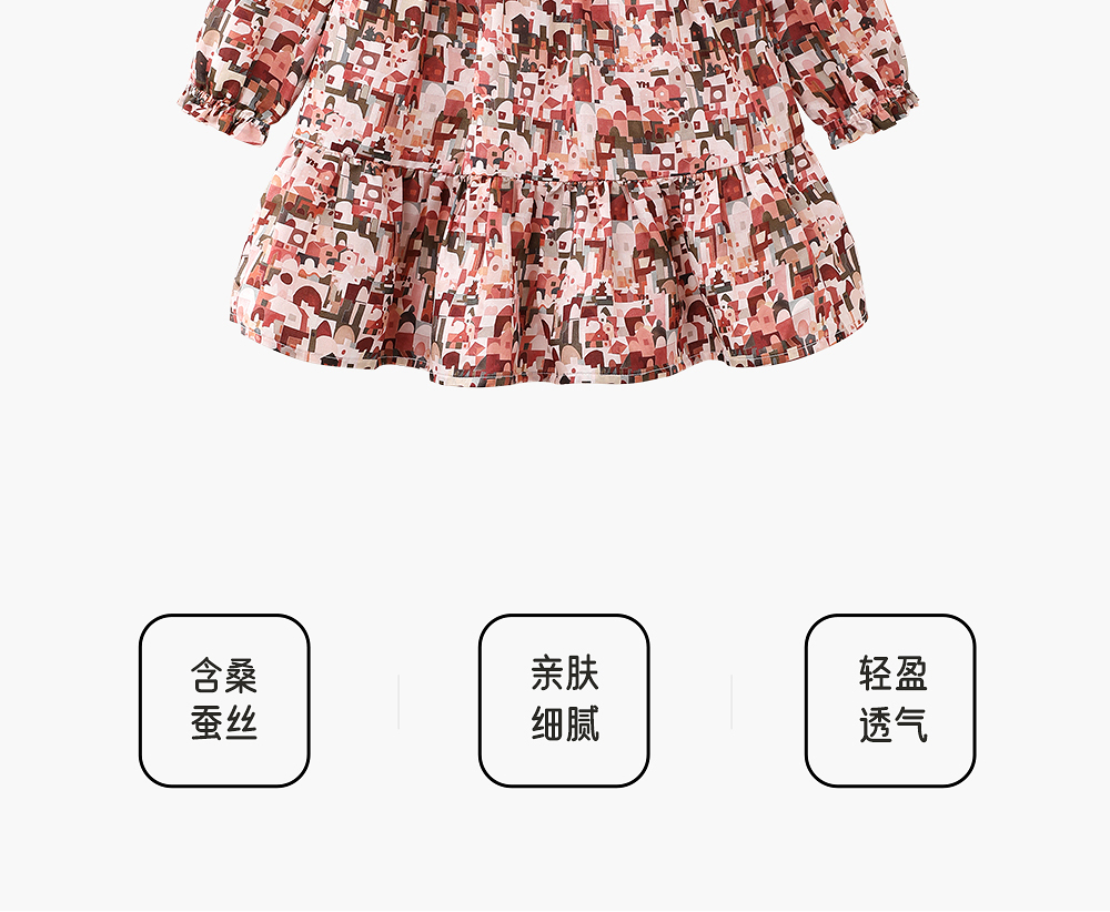 【高定系列】英氏女童裙子秋季长袖女童桑蚕丝裙子印花女生裙子