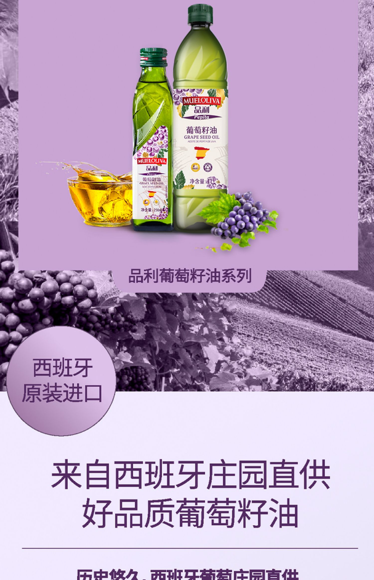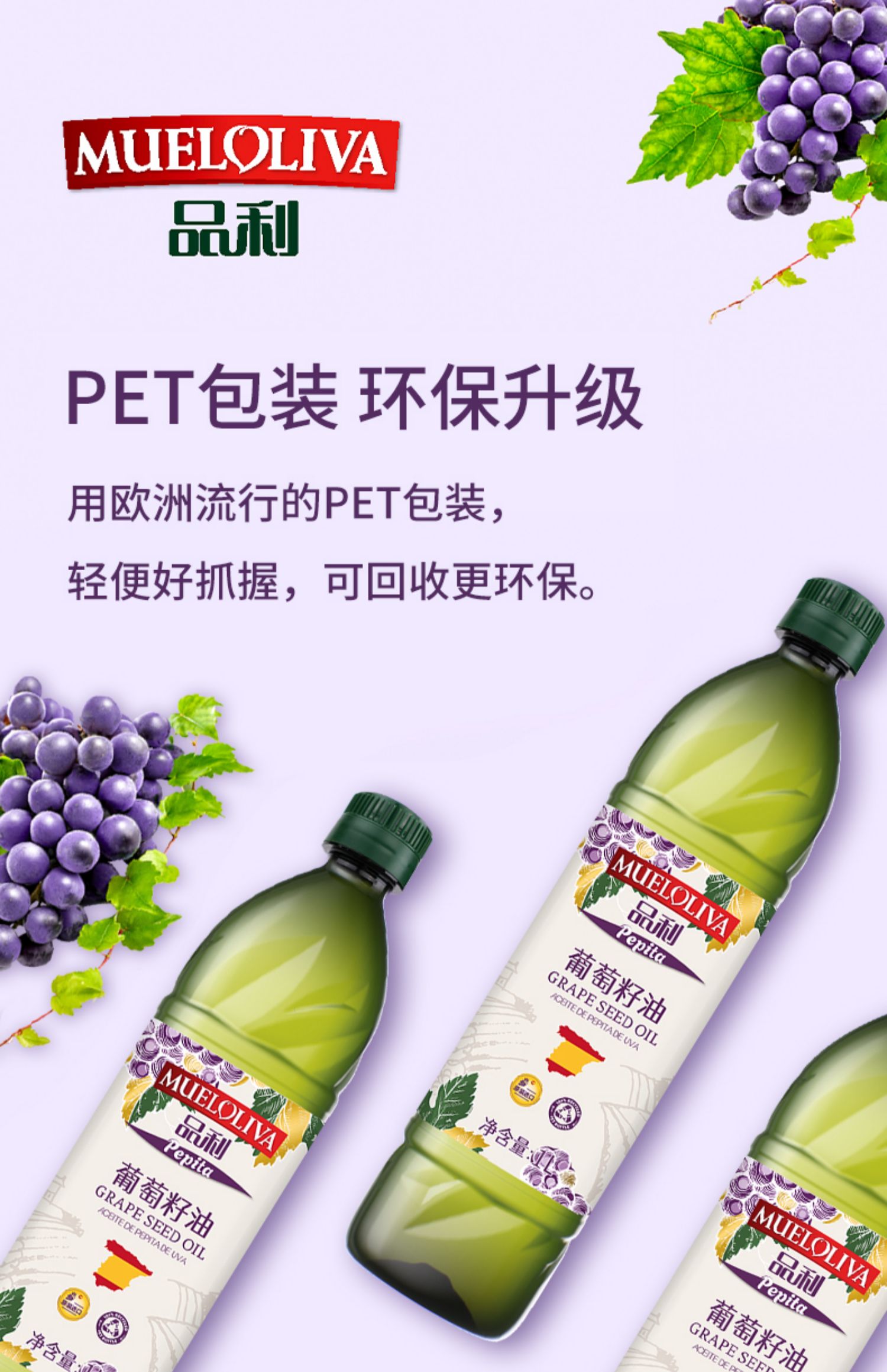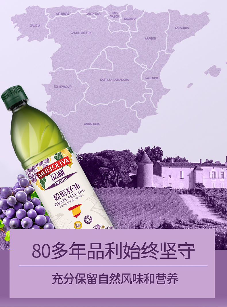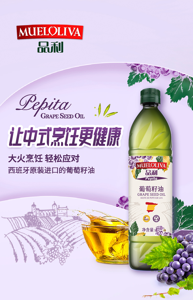 西班牙品利葡萄籽油1L/032105 物理冷压榨营养均衡清香不油腻