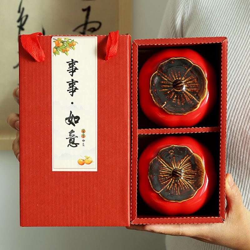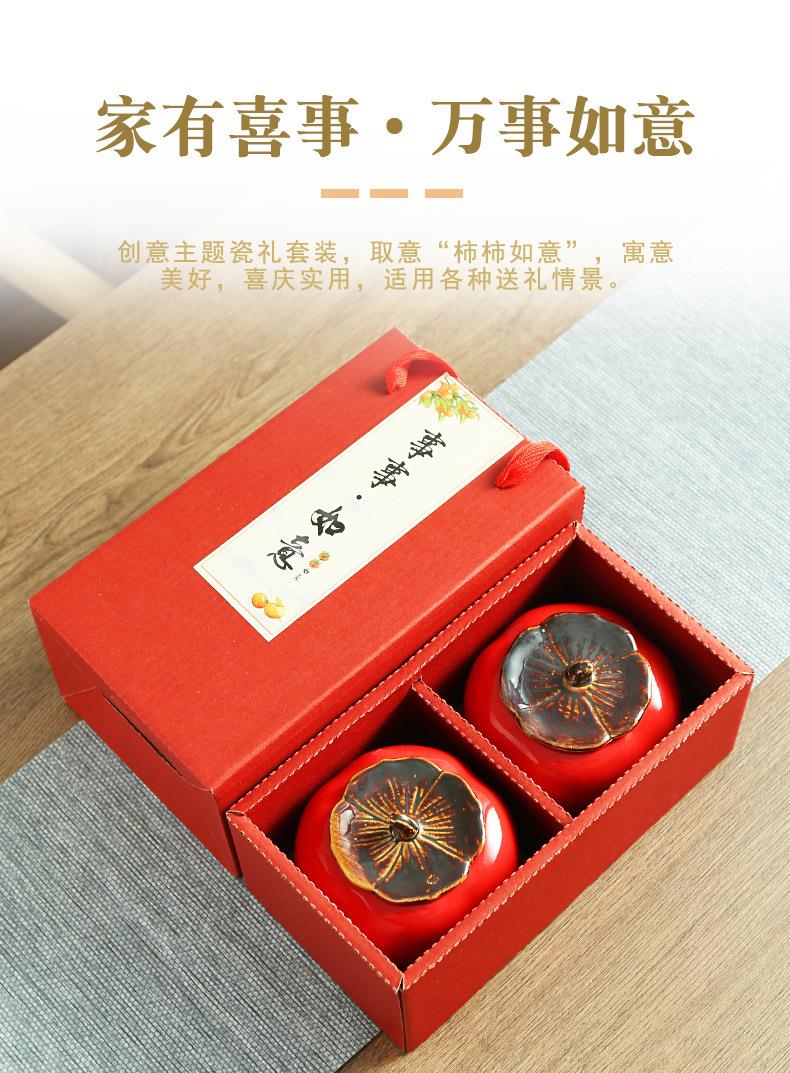 事事如意柿子陶瓷茶叶罐密封罐婚庆活动喜糖罐礼品礼盒伴手小礼品