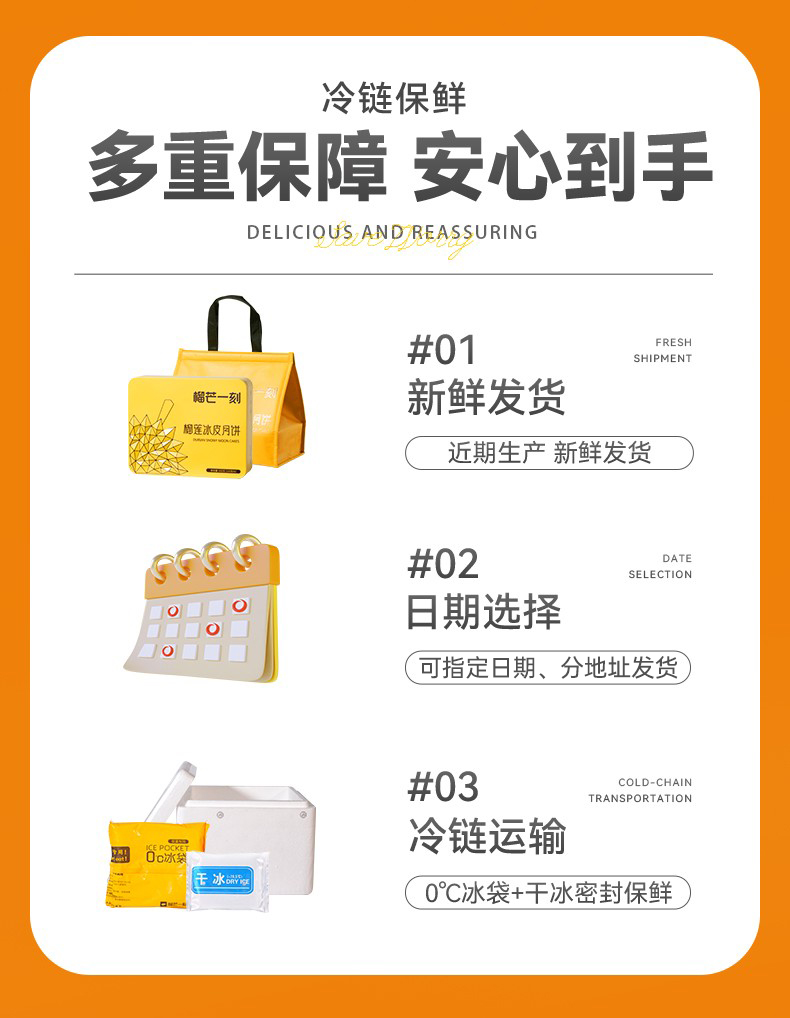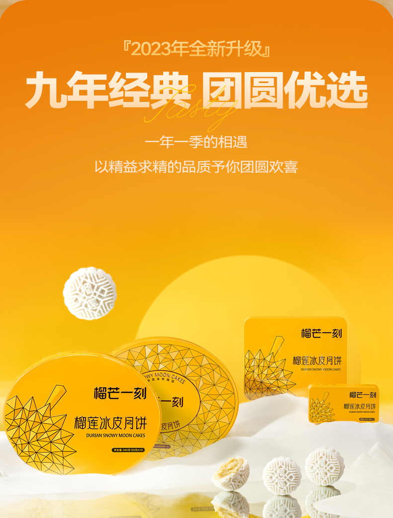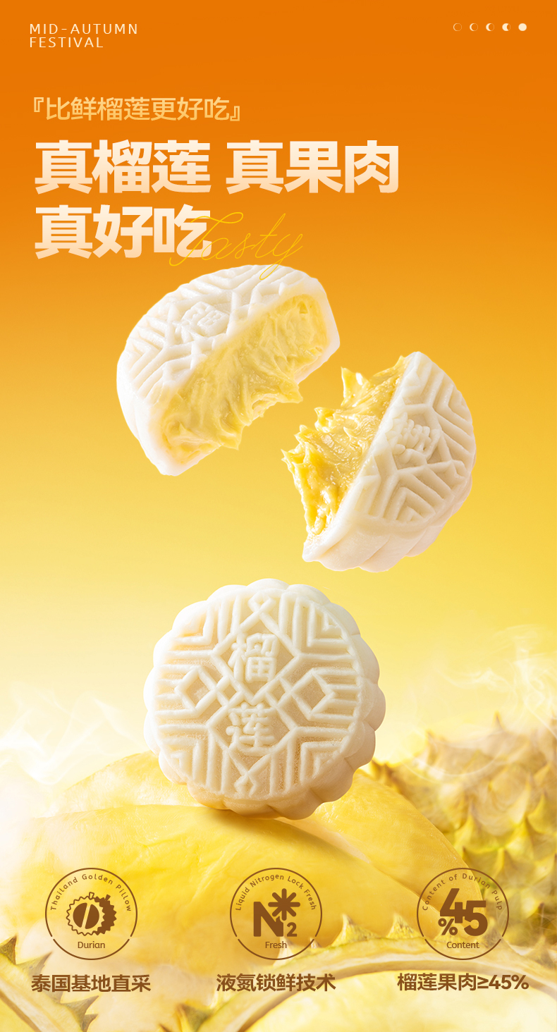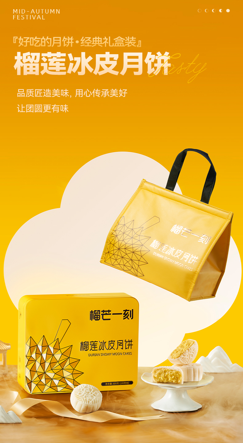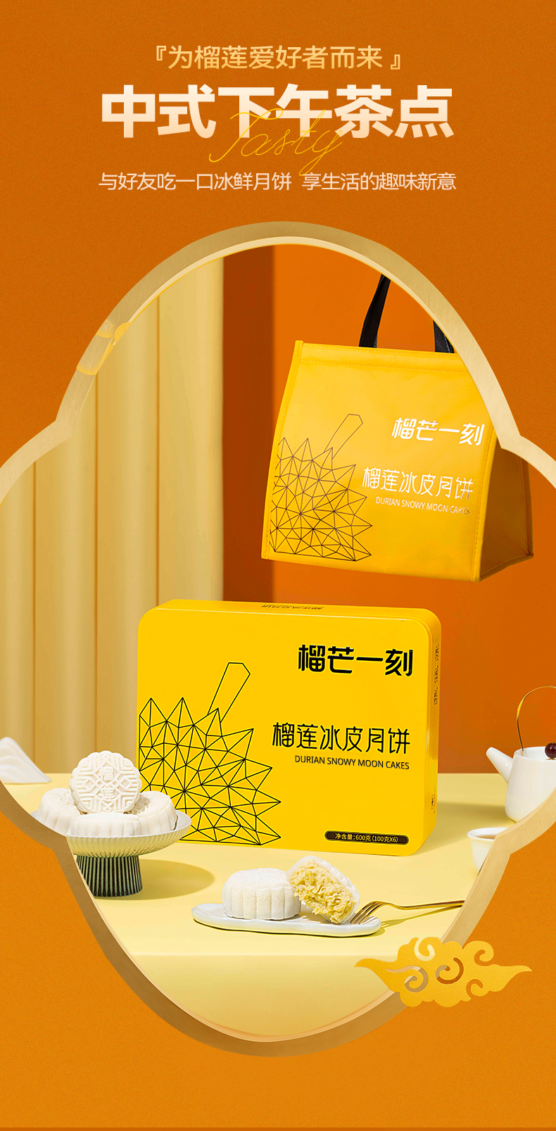 【品牌授权】榴芒一刻旗舰店榴莲冰皮月饼礼盒广式流心月饼 两枚装 榴莲冰皮月饼+芒果芝士冰皮月饼