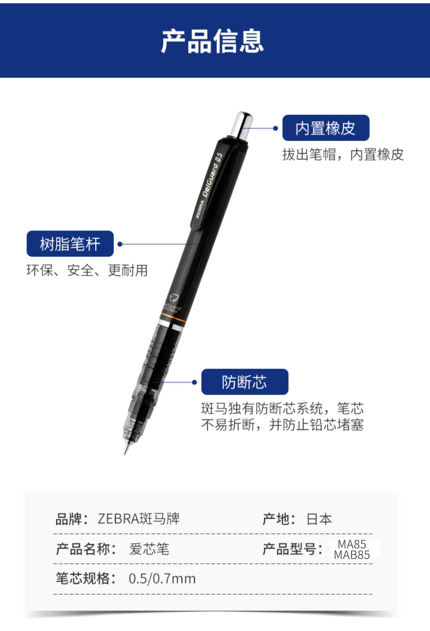 日本斑马MA85自动铅笔不断铅绘画绘图专用小学生用自动铅考试素描