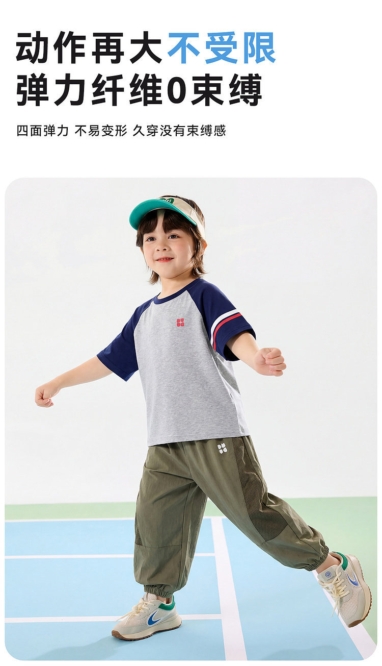 [四面弹]嘟嘟家童装儿童裤子夏季网眼透气男童休闲裤夏装女童长裤D6BKZ270
