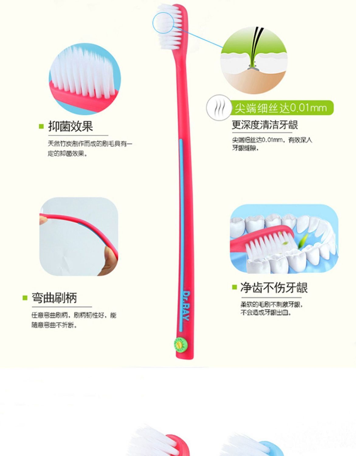 【爆款超低价预售 急单慎拍】泰国雷治牙刷Dr.RAY小头软毛成人女生情侣清洁月子超细毛两支D23