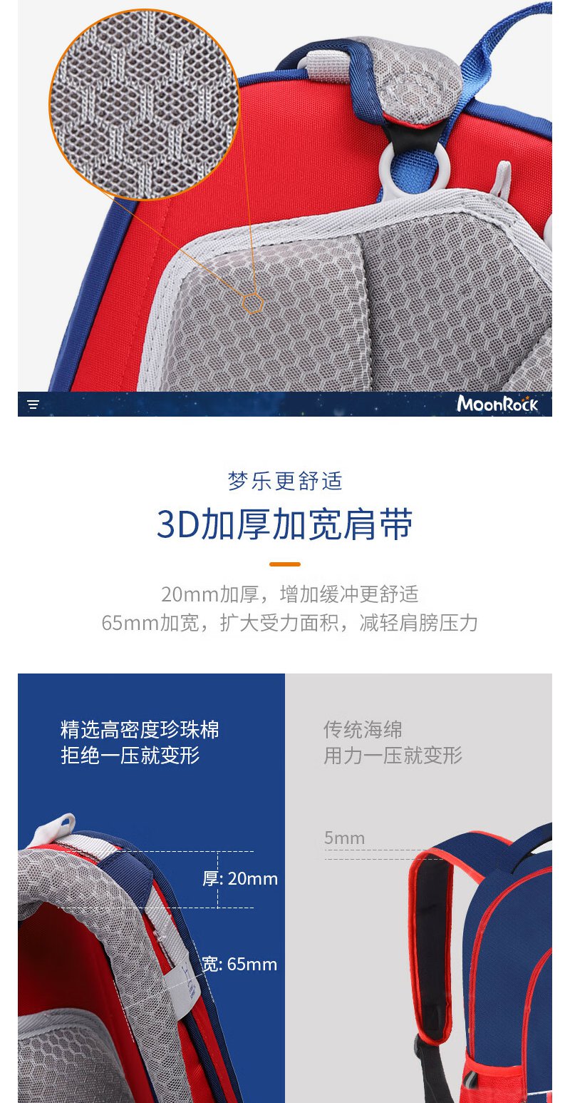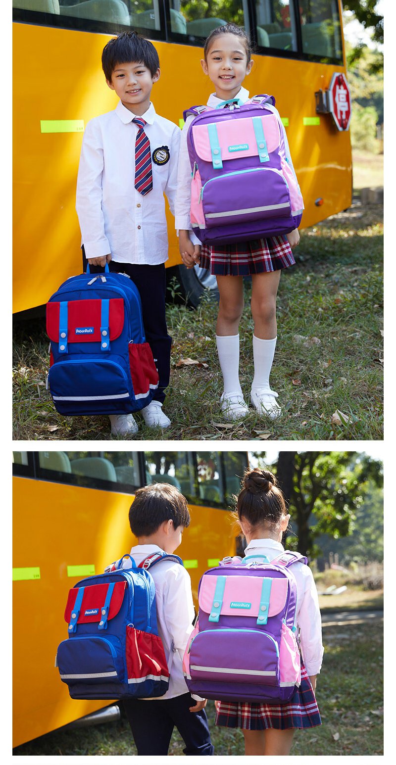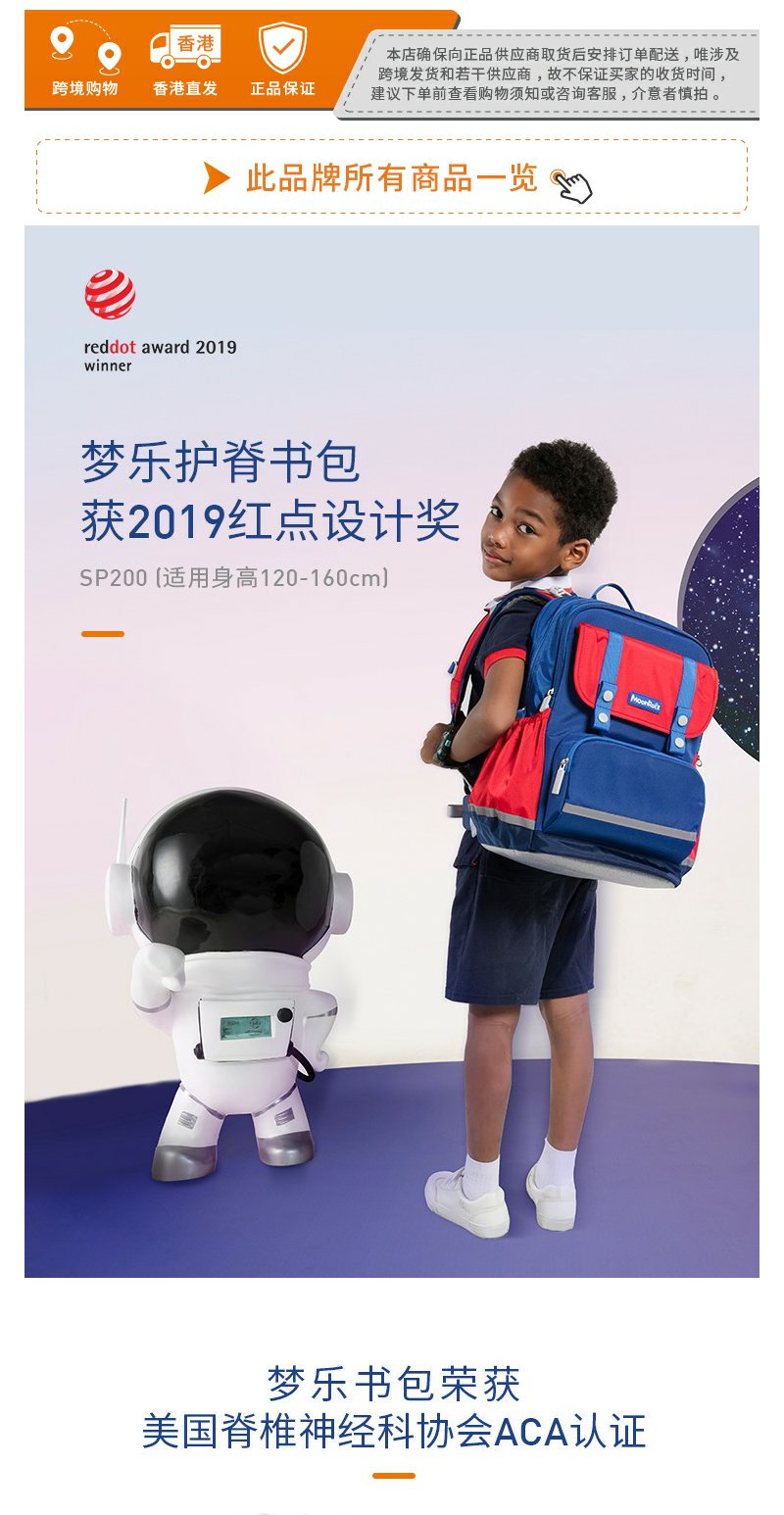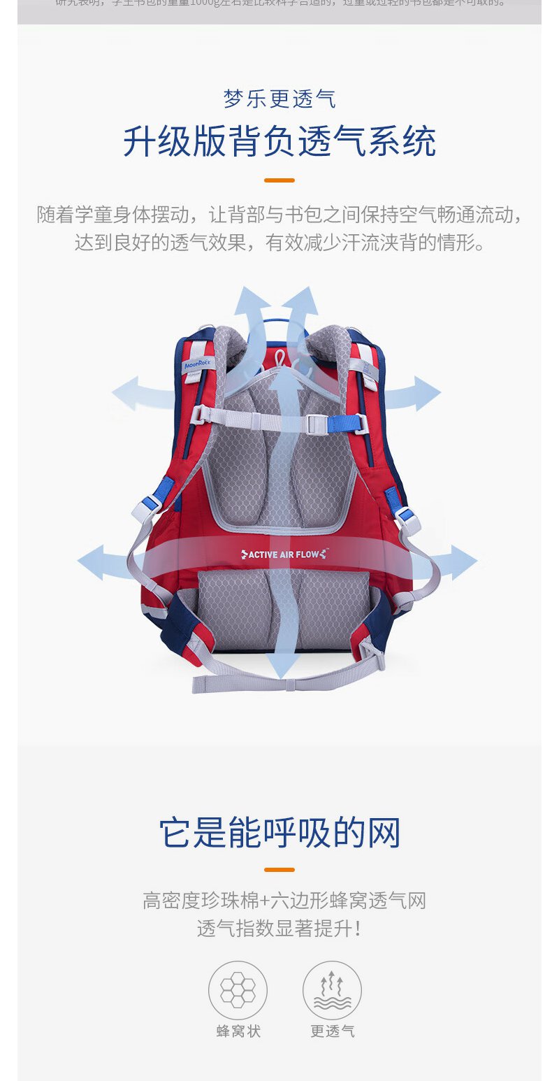 【护童】B座8F | 梦乐(MoonRock)21年款护脊书包透气减负儿童小学生3-6年级男女 香港设计廊 红色 2120 21L