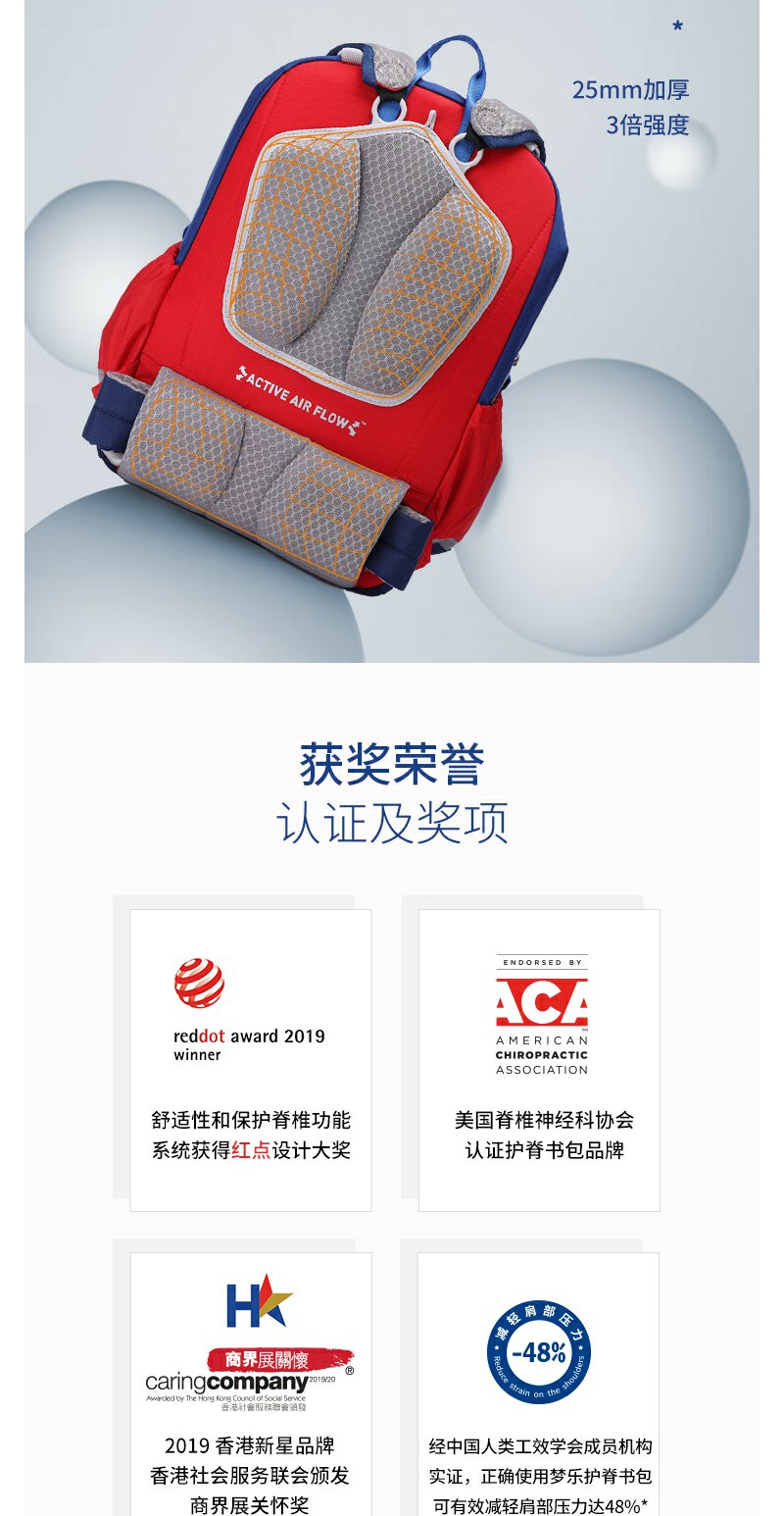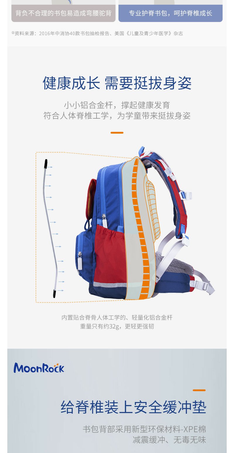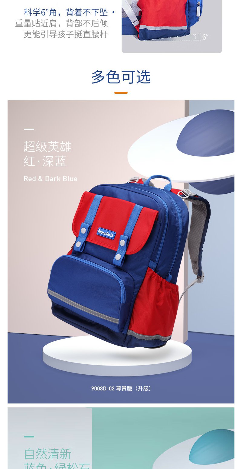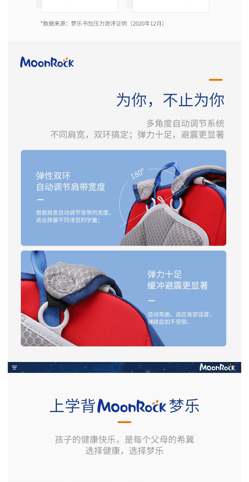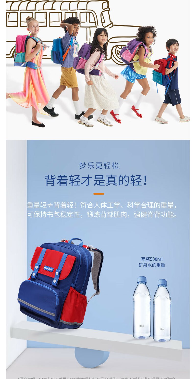 【护童】B座8F | 梦乐(MoonRock)21年款护脊书包透气减负儿童小学生3-6年级男女 香港设计廊 红色 2120 21L