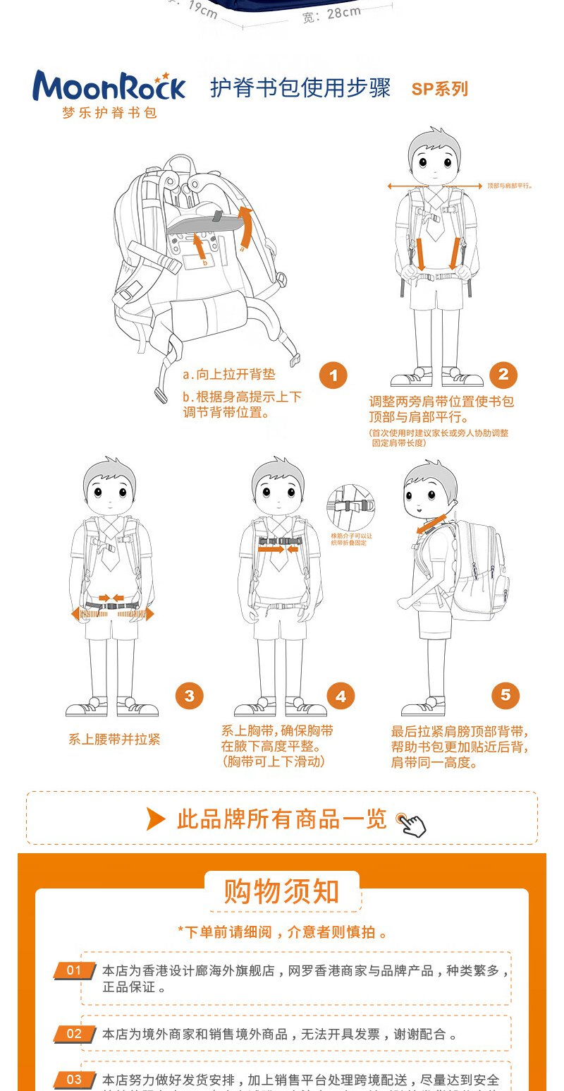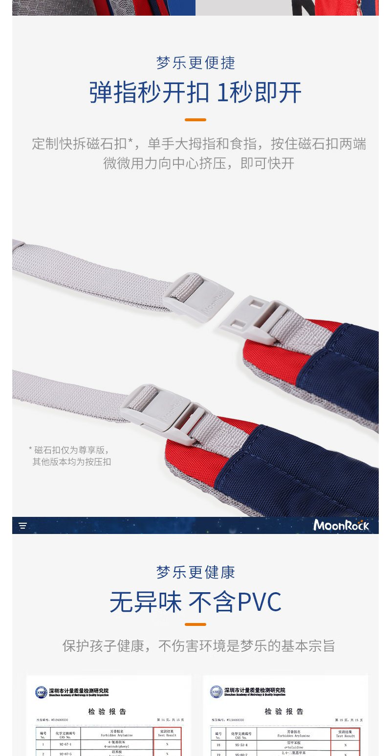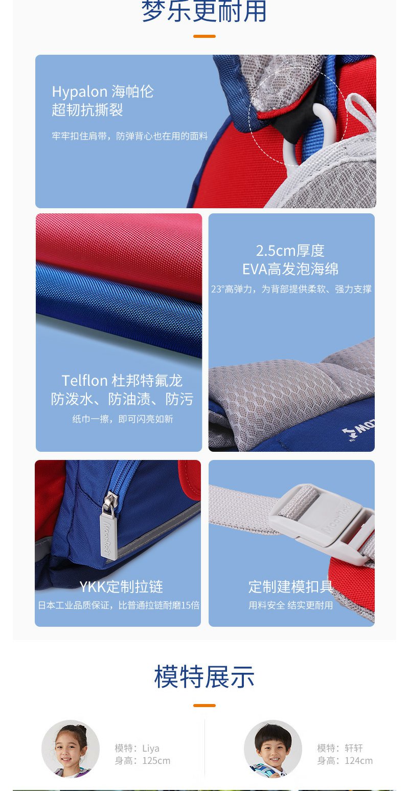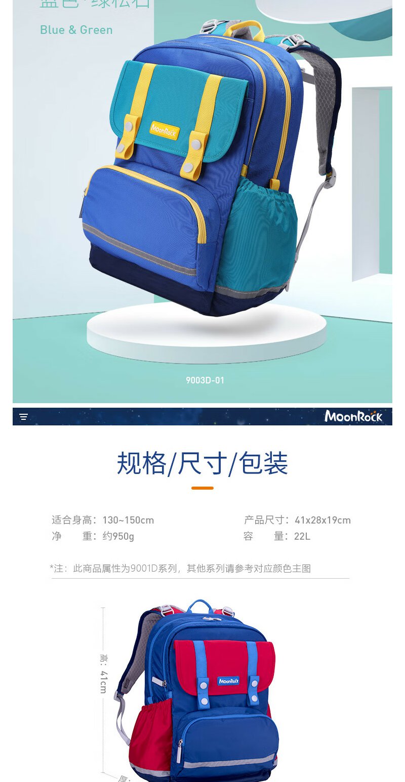 【护童】B座8F | 梦乐(MoonRock)21年款护脊书包透气减负儿童小学生3-6年级男女 香港设计廊 红色 2120 21L