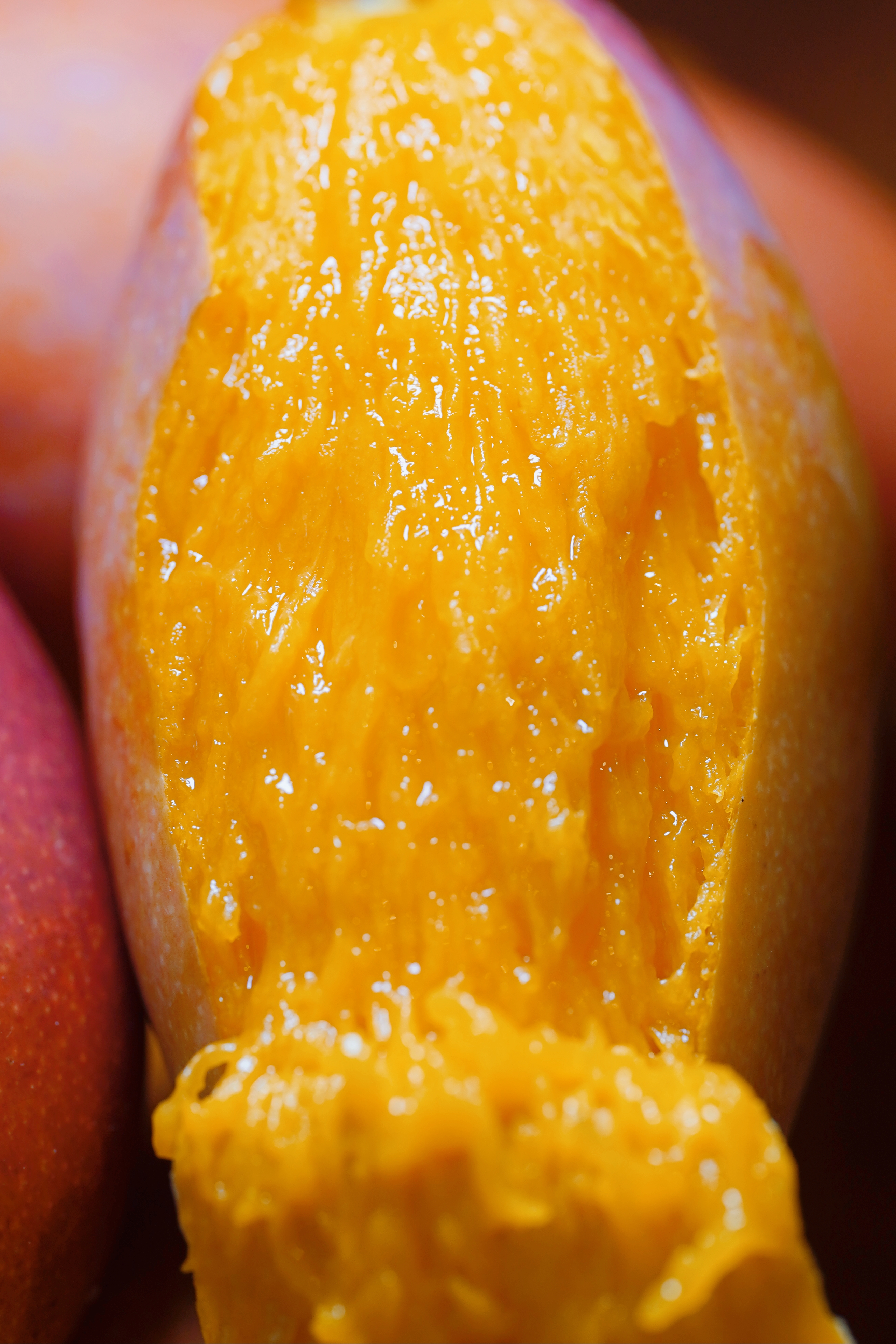 贵妃芒是我们每年必吃的品种。无其他,香气太旖旎。这是一颗实现你所有芒果想象的果子。不仅甜、不仅美,而且是老树树上成熟,香气四溢。