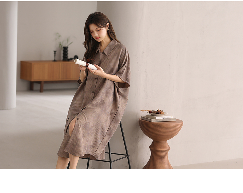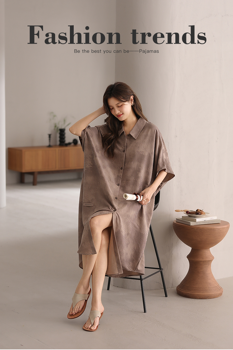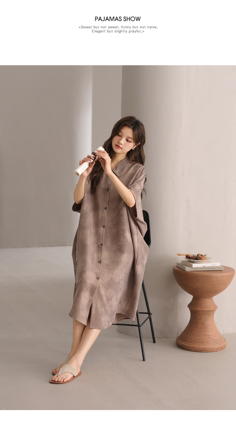 可人儿小众设计师新款泡泡绵女士睡衣夏短袖少女睡裙可外穿家居服